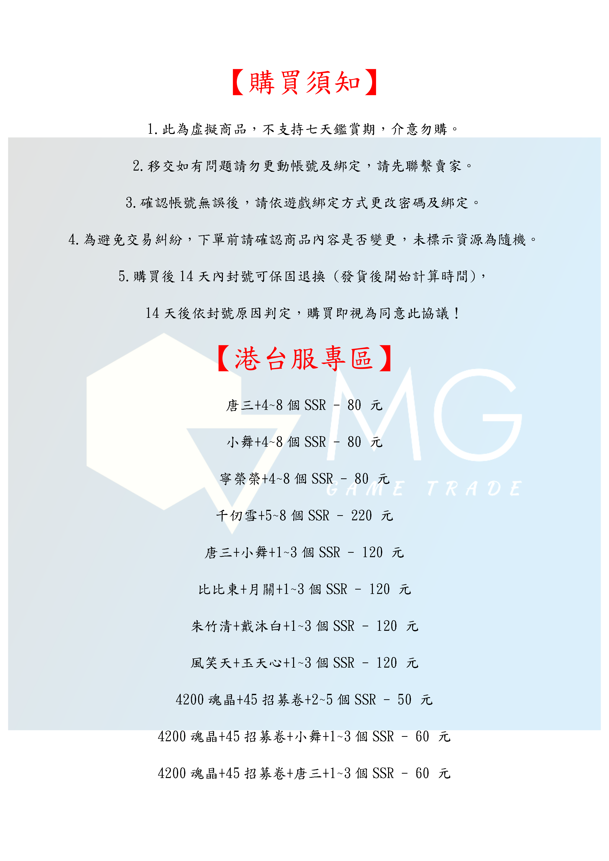 帳號 【初始號】 【MG數碼】 港台服 陸服 多石號 多魂晶號 初始號 自抽號 自選號 自選組合