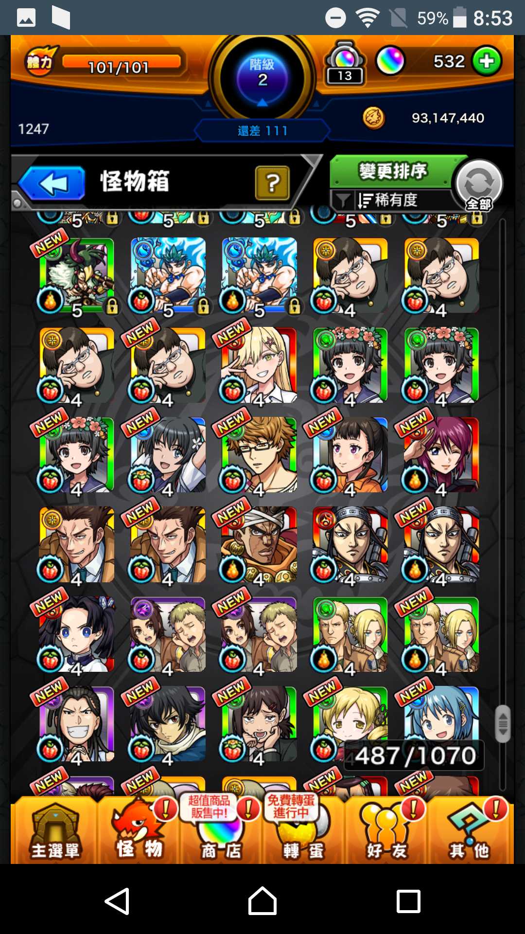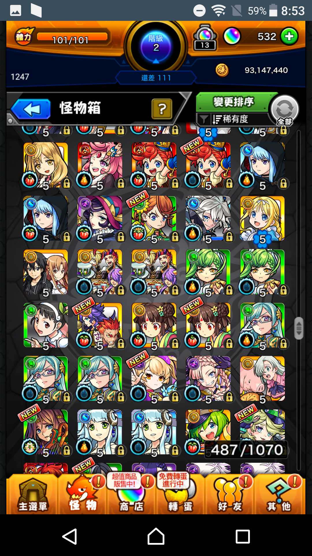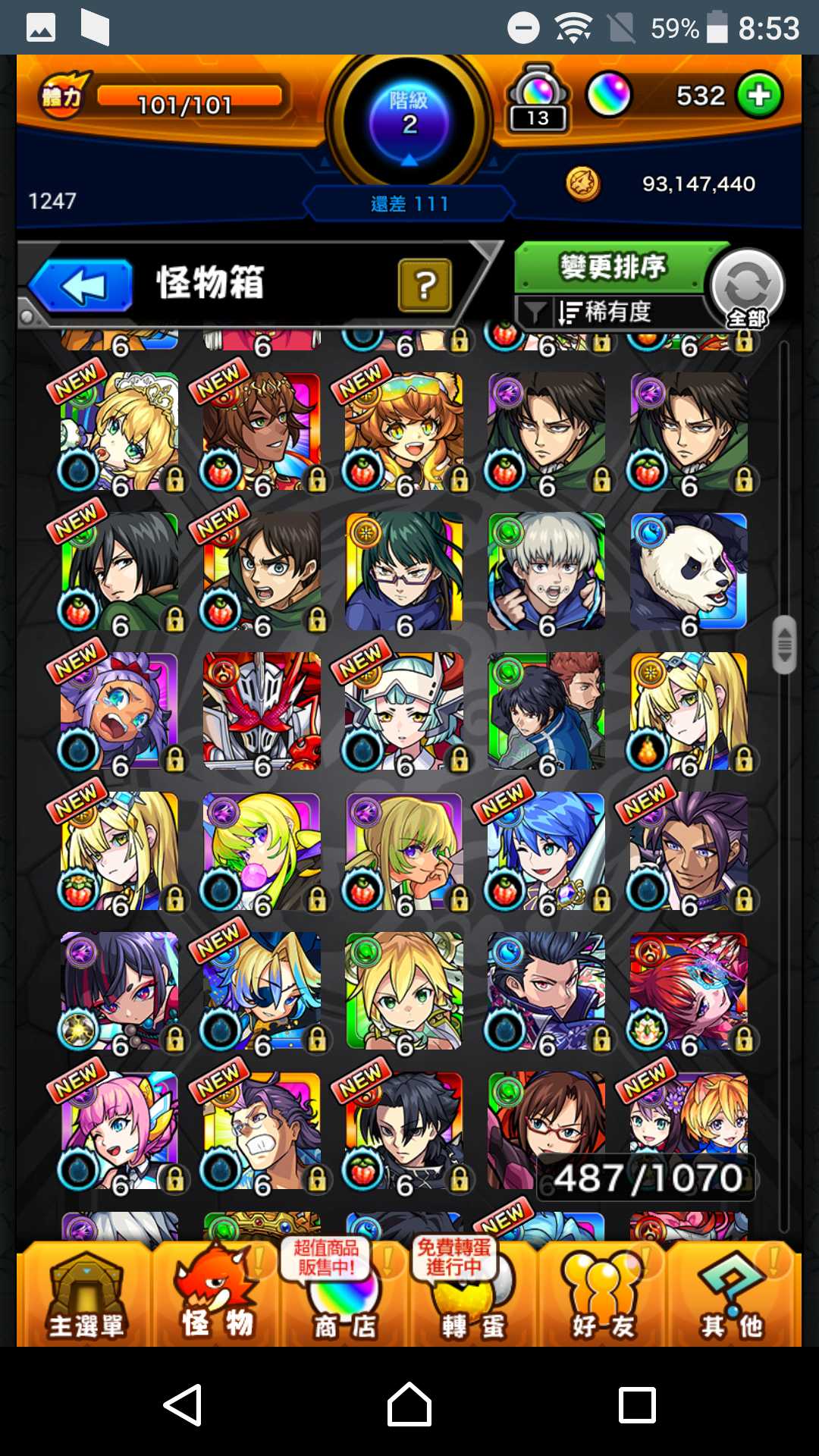【初始號】艾兒2+正宗2+八雲+妮奧5+瑪娜4+夏日刀劍全+地獄樂全+死神1全+巨人1全