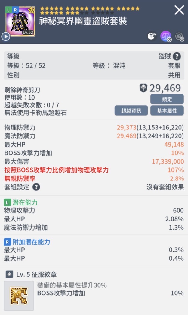 道具 亞洲ㄧ/傑尼斯/52等/神秘冥界幽靈盜賊套裝 詳細如圖