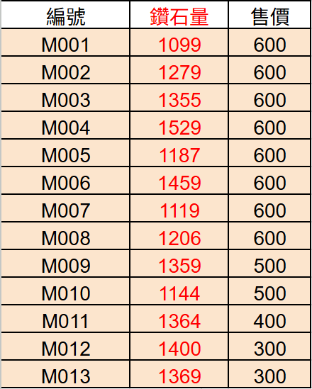 每隻帳號售價不同,依圖四表格為主