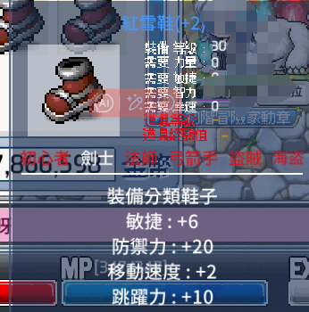 裝備名稱: 6敏-紅雪鞋(劍士用) 參考價格: 450T (少量)
