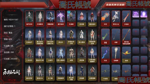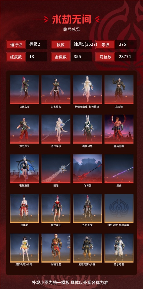 初代玄女,九陰聖女,耀世魂花,夜華朝,簪纓,戎金狼,沙狼之怒,頭狼之心,追獵,鬥羅大陸·唐三,鬥羅大陸·海神,絕代風華,火羅聖女,浣煙紗,觀山海·青鳥,長歌詩韻·胡旋女,觀山海·青鸞,翔鸞,熛怒煉火,2674·街頭烈火,江湖行,逆水寒·江海,陰陽姬,貴胄少女,月丹,若水尊者,八寶龍王,裟伽龍王,妖刀姬,決戰平安京·朔夜遊方,陰陽師·灼舞桃節,泣珠龍紗,探海裙,觀山海·文鰩,龍之影·過江龍,複製體·尼爾,朝聞道,司天命,楓狩,新倩女幽魂·長天藏錦,智繪·萍之緣,蘇木,朱雀星衣,斑斕衣,觀山海·秋神蓐收,監兵凶神,觀山海·天刑,夜魅遊瑩,觀山海·冬神玄冥,護世四法·持國天王,觀山海·冥泉,流螢,黃昏巫主,古溪,夜綢袍,干將莫邪,巨闕,千秋匠心·玉葉景,武道無窮·少林,【挑染】風吹雪,楚韻九歌·山鬼,繾綣,【挑染】櫻舞,封神錄·妲己,阿娜希塔,封神錄·申公豹,封神錄·姜子牙,封神錄·龍吉公主,封神錄·仙風,封神錄·紅鸞星,封神錄·籠煙芍藥,綠野守護·悠竹萌客,綠野守護·山漠獰影,綠野守護·嬌憨,幽焰,九驪之君,祿運玉霄,福瑞天澤,雪鈴綺歌,秀逸,蜜語,開闢鴻蒙·風雨諧,開闢鴻蒙·金戈止,怪誕狂想·街頭夢語