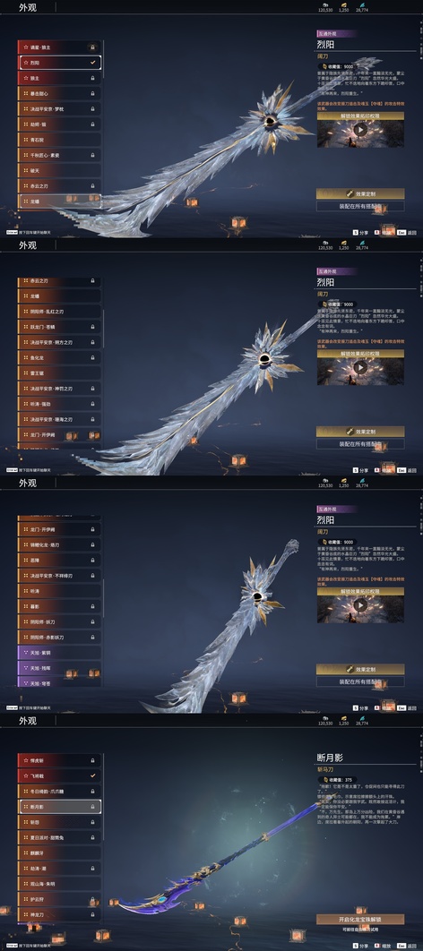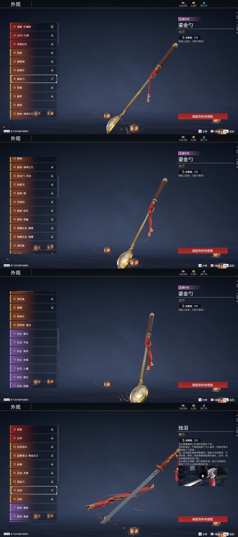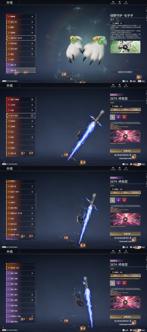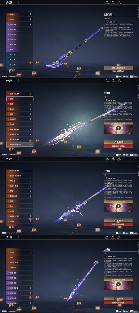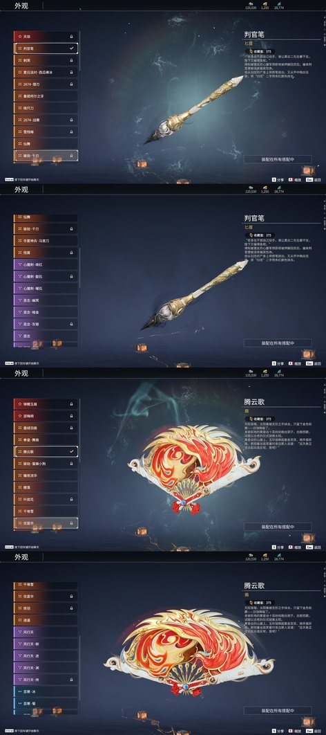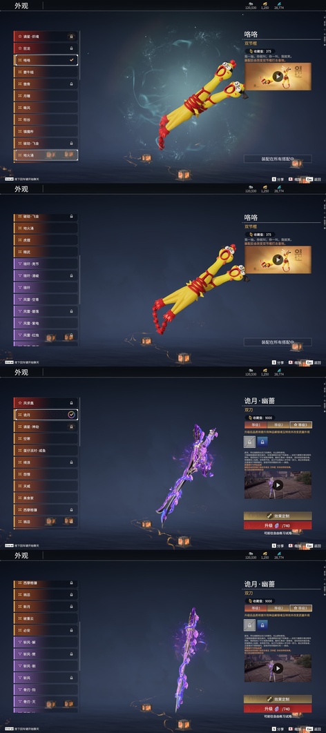 含光承影,陰陽師·傘劍,燭神令,劫燼·煉,赤霄,隱鋒,監星尺,狻猊吼,青花,逆逢,數珠丸,陰陽師·鬼切,烈陽,聽濤,雷王鋸,龍蟠,陰陽師·亂紅之刃,涯角,白虹,長虹,正氣掃帚,凌雲志,建木,華夏神兵·馬首刀,仙舞,橈尺刀,虎擺,精武,鎮魔杵,地火湧,銜谷,嘶風,月瞳,夔牛槌,破重雲,美食家,天威,打狗棒,倒馬棍,學宮之杖,武道無窮·封魔,飛將戟,觀山海·朱明,觀山海·水衡,千堆雪,燭淚,亂風雲,石中火,龍嘯,貔貅吞寶,造景,心魔,炎魔,蓮心劍雨,金蠍,觀山海·嘉果花,爐中火,虎踞,鎮海,引冰落,觀山海·金神鉞,破天,天牛翼,豹胎易筋弓,雷落,櫻落,逍遙,咕咕,咯咯,曼提柯爾之刃,怨憎,天狐,凝冰魄,亢龍,青石猊,麒麟牙,耀夜流華,鑽山,瞑視,蛋仔派對·鹹魚,綠野守護·雨幕,烏木弓,綠野守護·毛乎乎,靈木角,空寒,戲祥雲,雪國禮炮,糖果棍,判官筆,鎏金勺,拳皇·舞扇,騰雲歌,穿雲燕,詭月