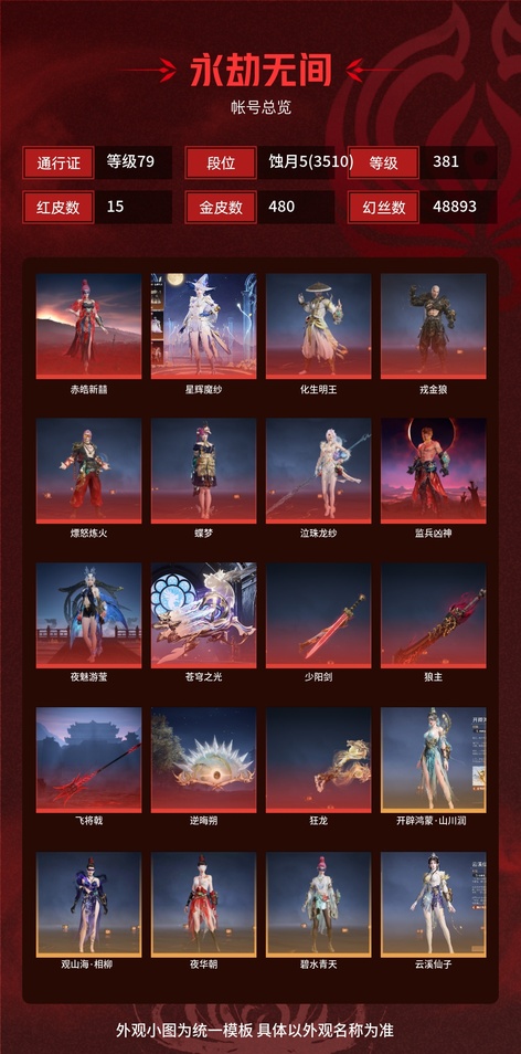 赤皓新囍,碧水青天,夜華朝,簪纓,戎金狼,銀狼裘,鬥羅大陸·唐三,鬥羅大陸·海神,浣煙紗,璨銀魔梟,熛怒煉火,逆水寒·江海滄瀾,逆水寒·江海,護世四法·增長天王,蝶夢,日道神子,御宅羅夢,陰陽姬,清雅少女,貴胄少女,長歌詩韻·遣唐使,月丹,化生明王,八寶龍王,妖刀姬,陰陽師·灼舞桃節,泣珠龍紗,赤霧煙霞,怒浪,百戰·破荊者,弘毅袍,龍之影·過江龍,朝聞道,若谷,司天命,姑射真人,楓狩,智繪·萍之緣,伏苓,西行劫·紫衣仙子,街頭狂歡·塗鴉少女,綺雲衫,韶光,監兵凶神,夜魅遊瑩,百戰·斷鏈,護世四法·持國天王,流螢,黃昏巫主,古溪,天工奧妙,夜綢袍,沙海之鳩,干將莫邪,巨闕,千秋匠心·玉葉景,武道無窮·少林,繾綣,葫蘆兄弟·蛤蟆頭領,夏日派對·半夏晚風,封神錄·妲己,阿娜希塔,封神錄·申公豹,封神錄·姜子牙,盜墓筆記·越野帽衫,觀山海·相柳,封神錄·龍吉公主,封神錄·仙風,封神錄·紅鸞星,封神錄·籠煙芍藥,夏日派對·赤夏悠漾,綠野守護·悠竹萌客,綠野守護·暗沼摩羅,綠野守護·山漠獰影,綠野守護·嬌憨,幽焰,云溪仙子,巫師3·傑洛特,黃庭道,星輝魔紗,祿運玉霄,福瑞天澤,壽竹雲春,雪鈴綺歌,秀逸,蜜語,開闢鴻蒙·山川潤,開闢鴻蒙·風雨諧,開闢鴻蒙·金戈止,怪誕狂想·致命玩笑,怪誕狂想·紅藍狂想,怪誕狂想·街頭夢語,怪誕狂想·路奇迷蹤,怪誕狂想·友情歲月,長歌詩韻·鷓鴣天,長歌詩韻·如夢令,長歌詩韻·豪傑,長歌詩韻·沉醉,冬日綺韻·白熊,巔峰極速·小可,巔峰極速·蕾雅,汐淚,禍津素盞