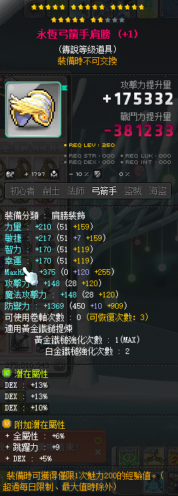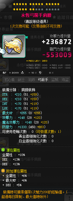 【永恆弓箭手肩膀】 22星 次頂 36%敏含全屬 附加罕見 大雙