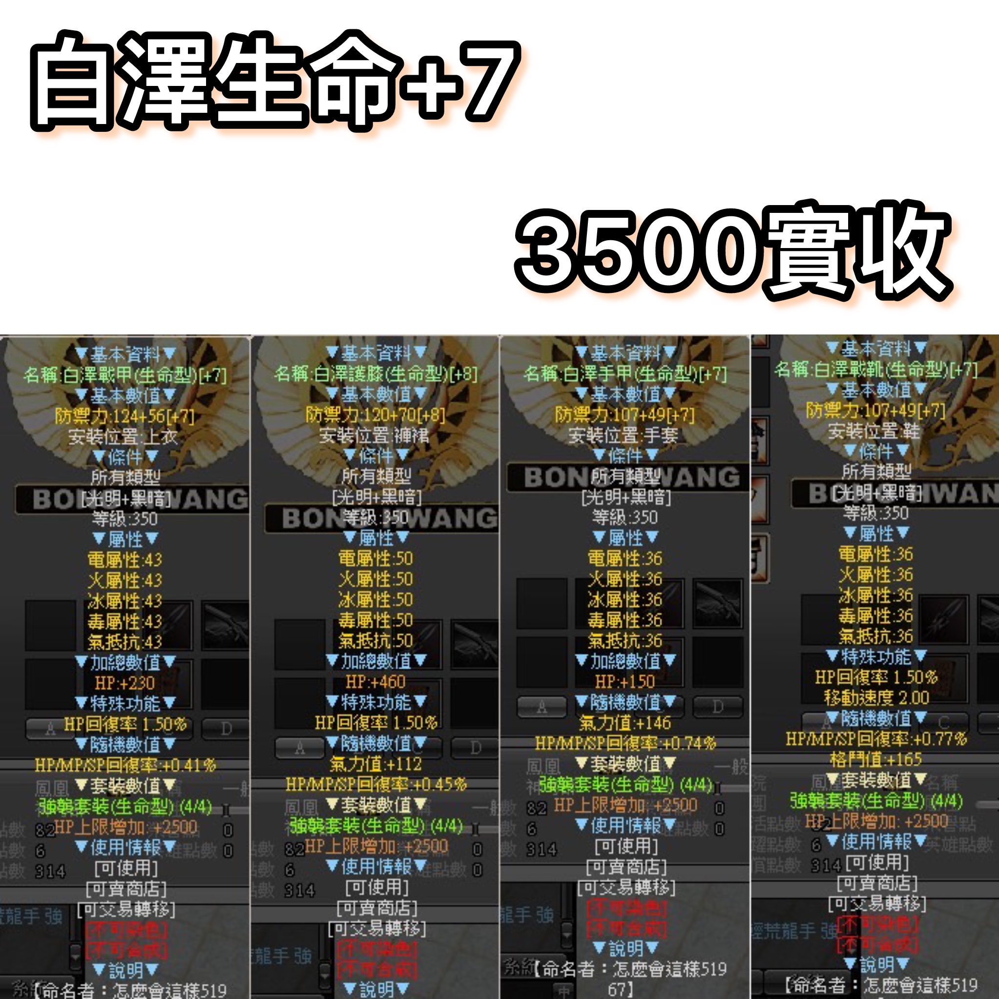 +2海柏槍|+2藍晶弓|+7白澤生命|染弓