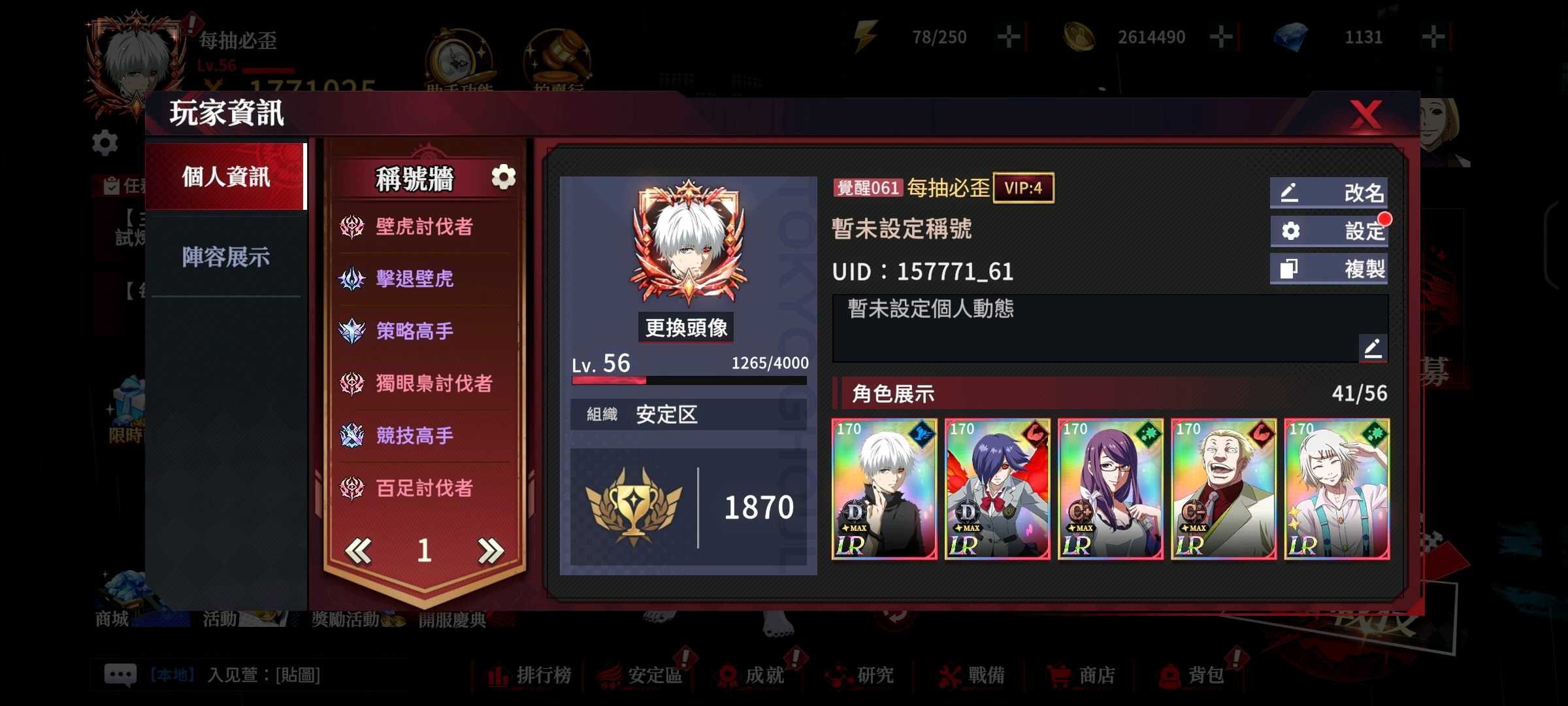 【56等】 61服 登過第一 心屬有馬 不玩了信箱整組給 SSR滿星共4隻 多高星角