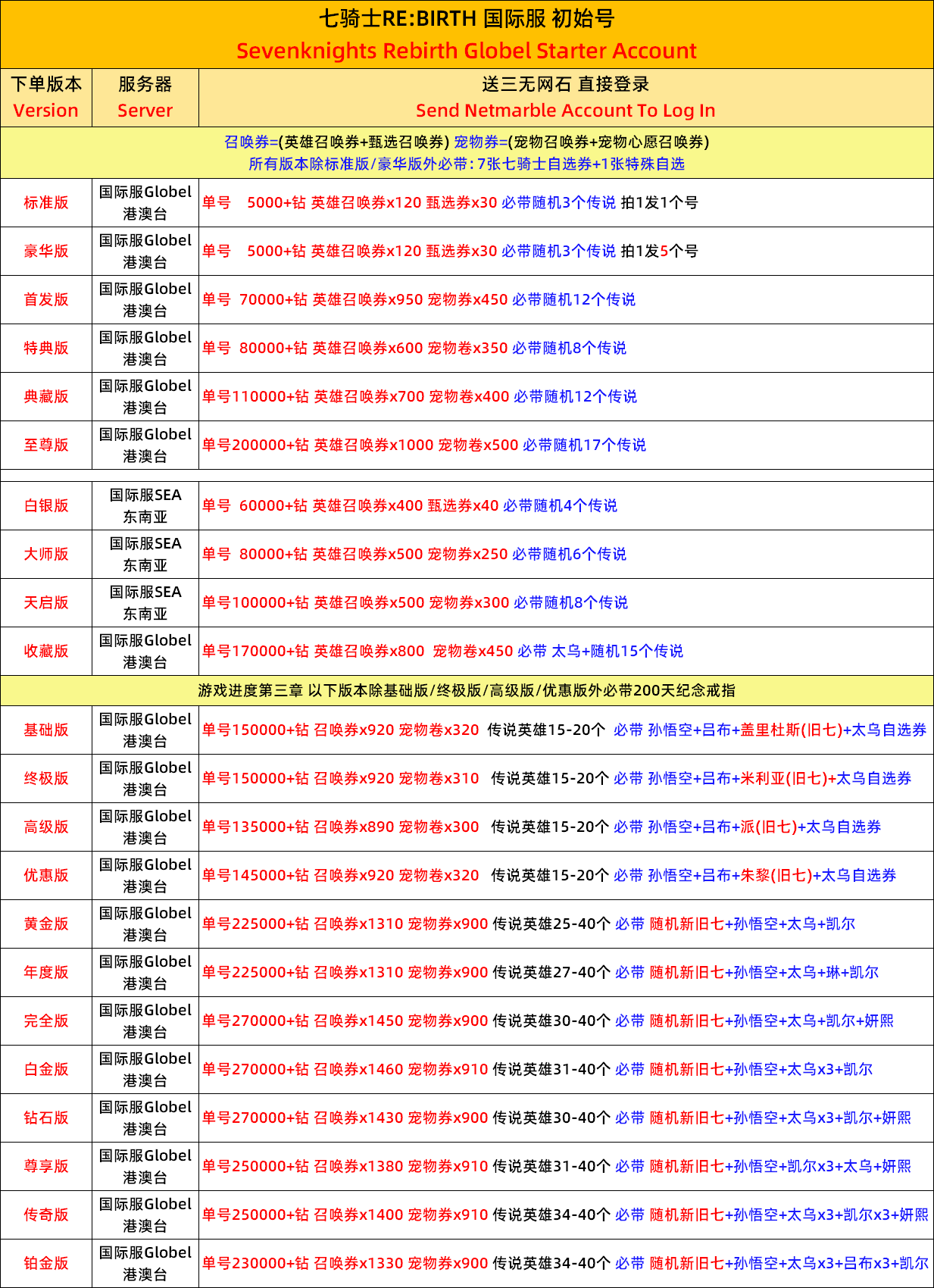 全 8591 首家 七騎士重生製版RE:BIRTH韓服國際服開局初始自抽自選初始首抽號