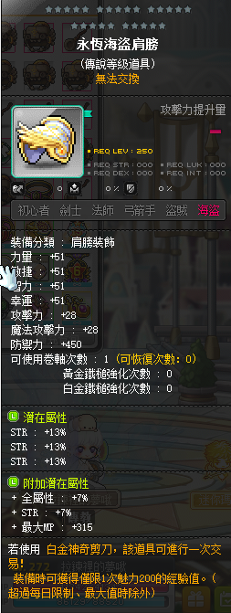 道具 【永恆海盜肩膀】 頂%39%力永恆海盜肩膀 附加傳說雙排