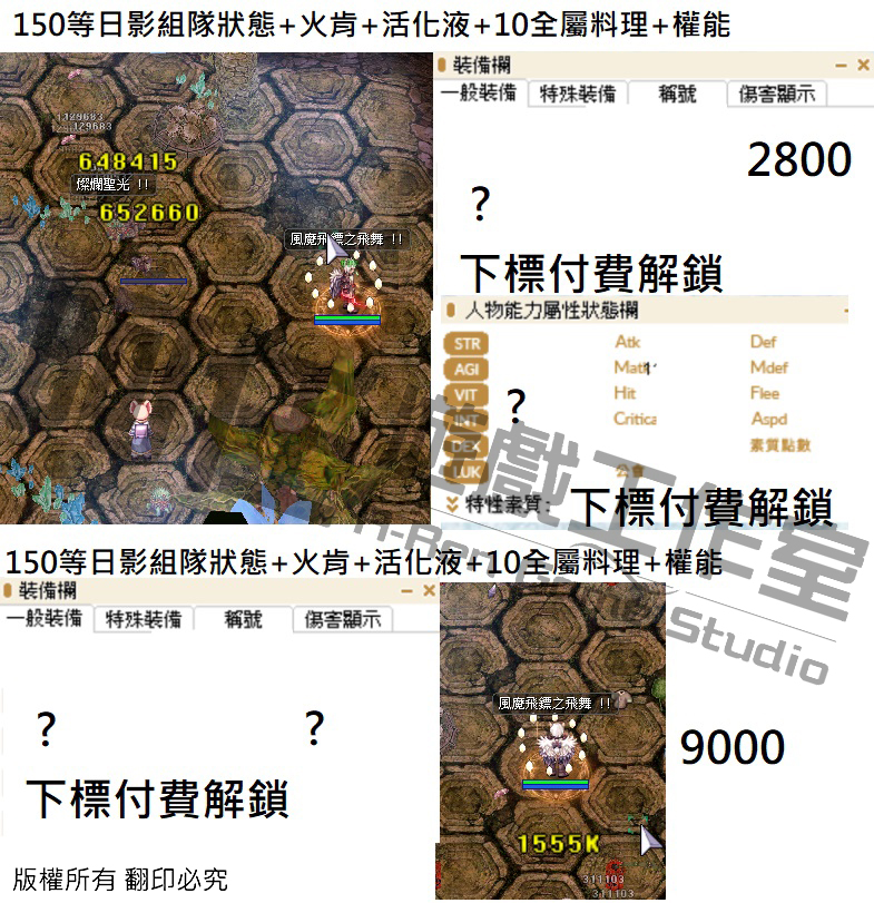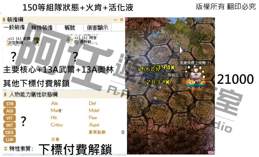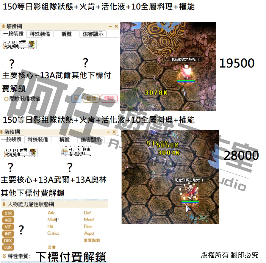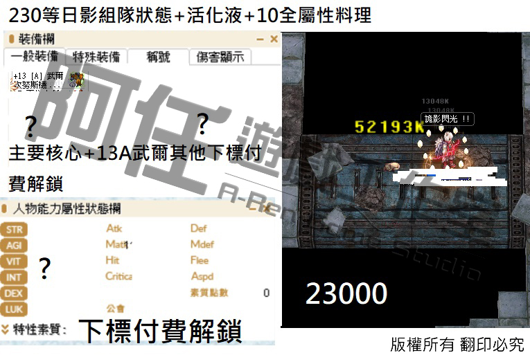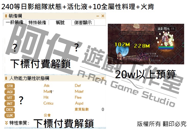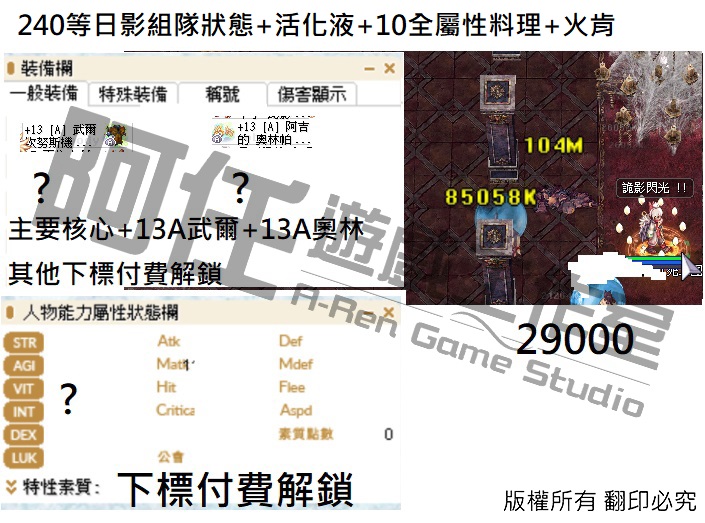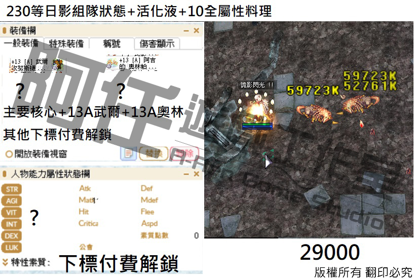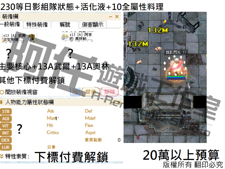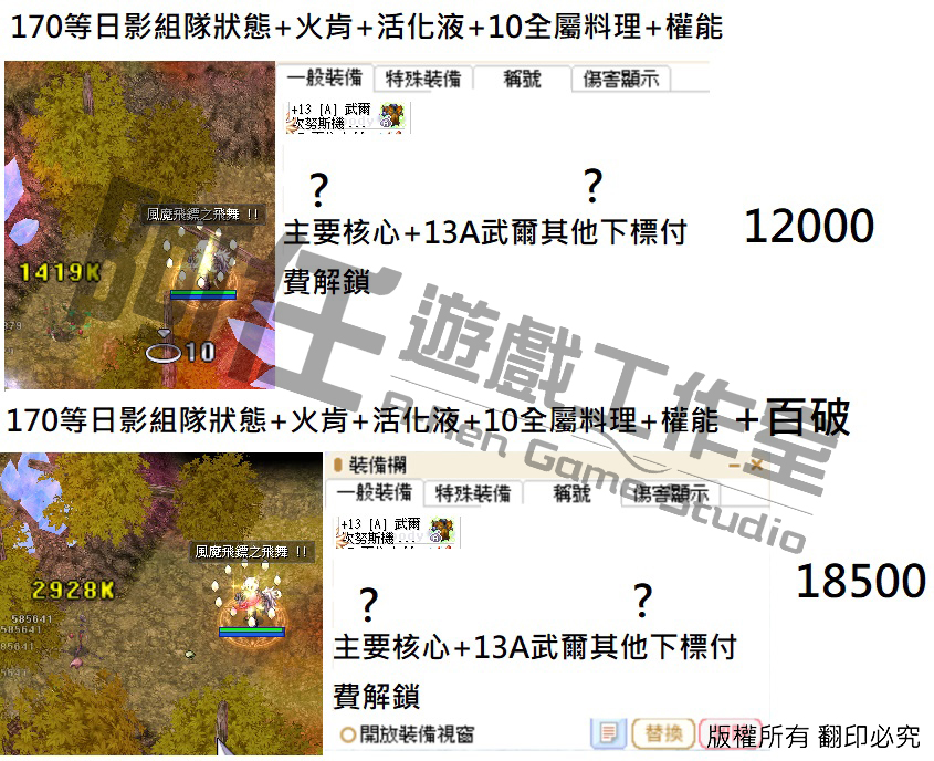 日影測試文 130-240等以後各區間打怪傷害 不知道怪物血量可以詢問