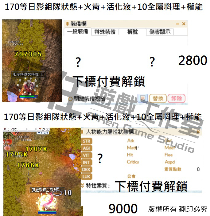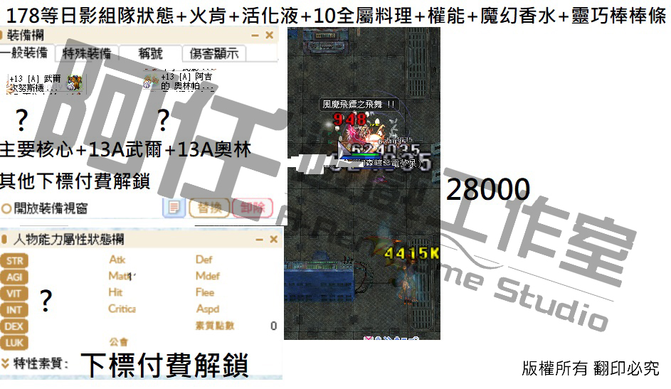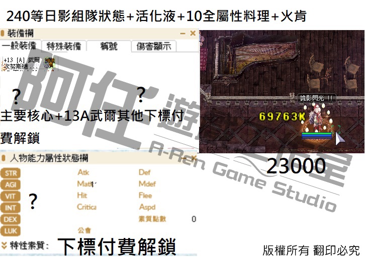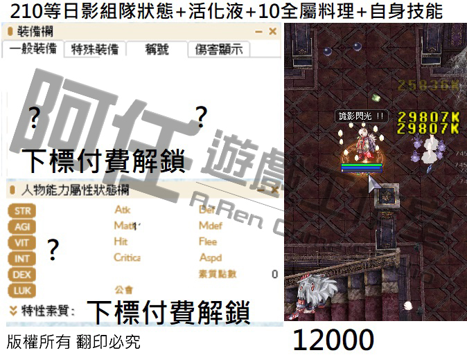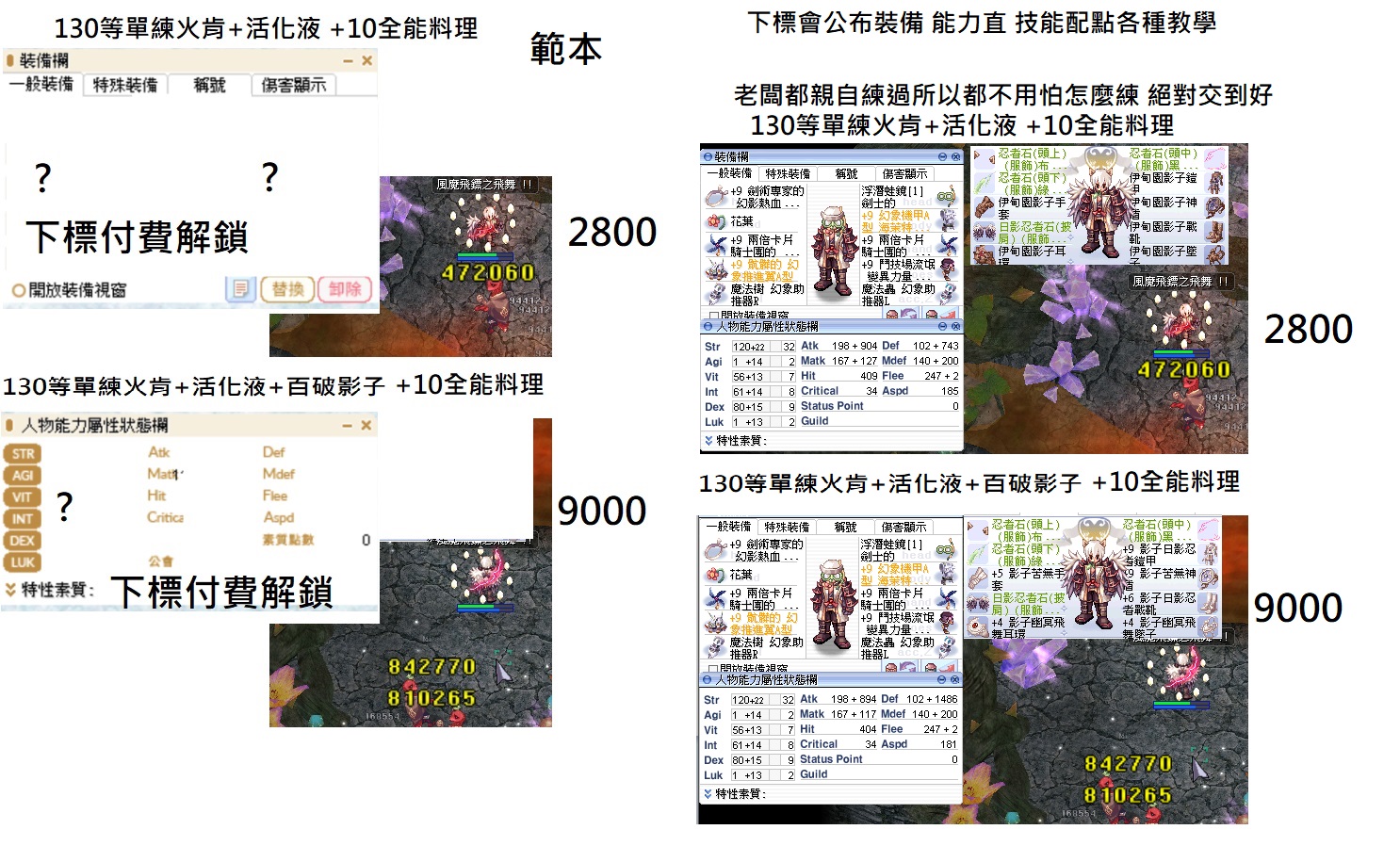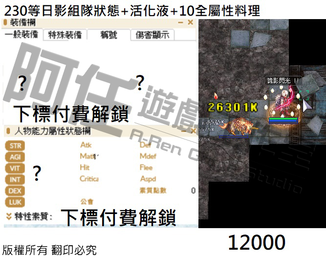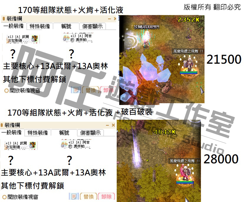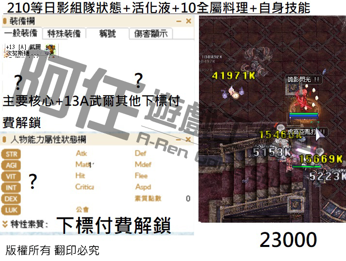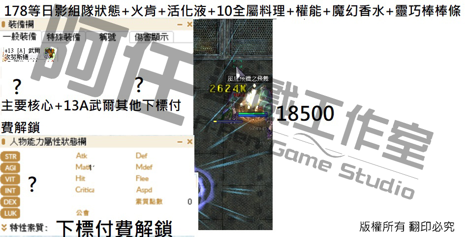 日影測試文 130-240等以後各區間打怪傷害 不知道怪物血量可以詢問