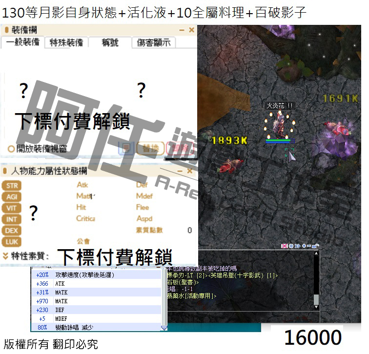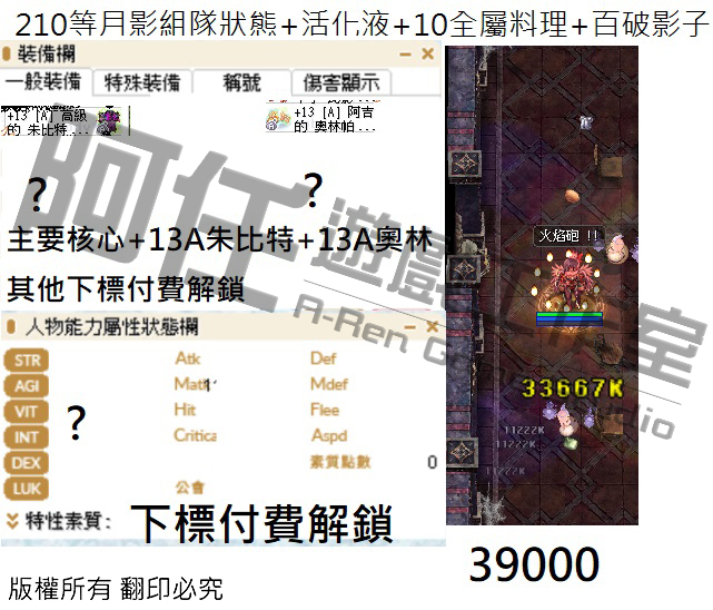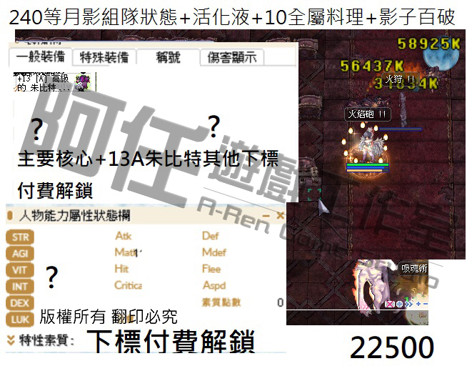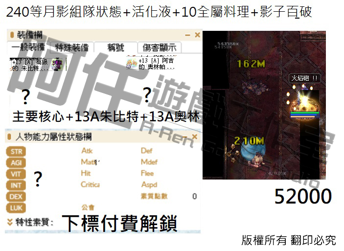 月影測試文 130-240等以後各區間打怪傷害 不知道怪物血量可以詢問