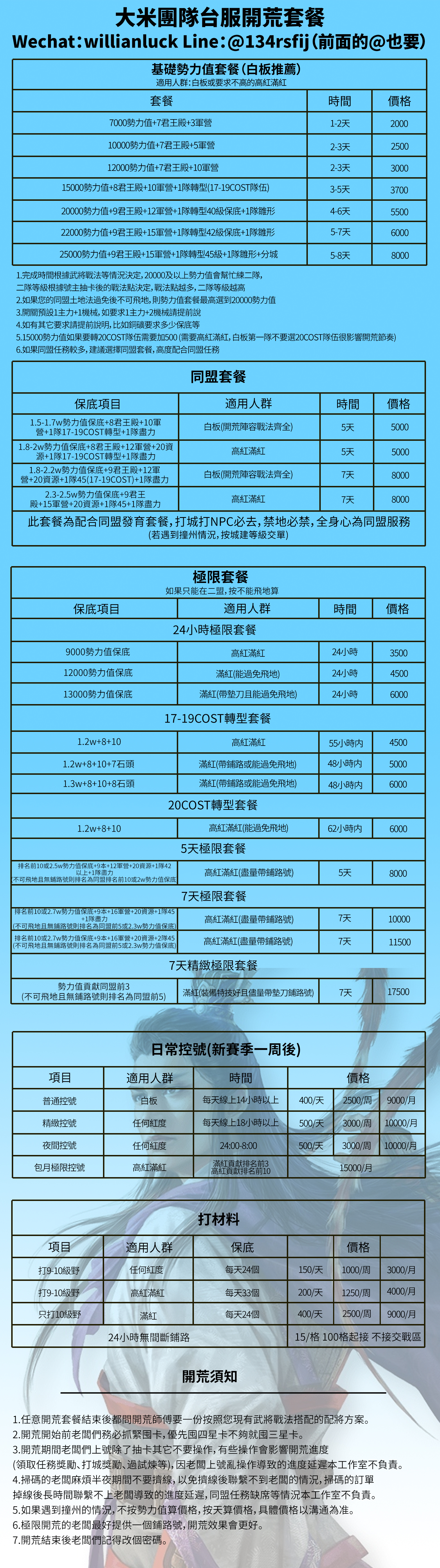 承接IOS/安卓全賽季開荒/配將/控號/鋪路等業務。