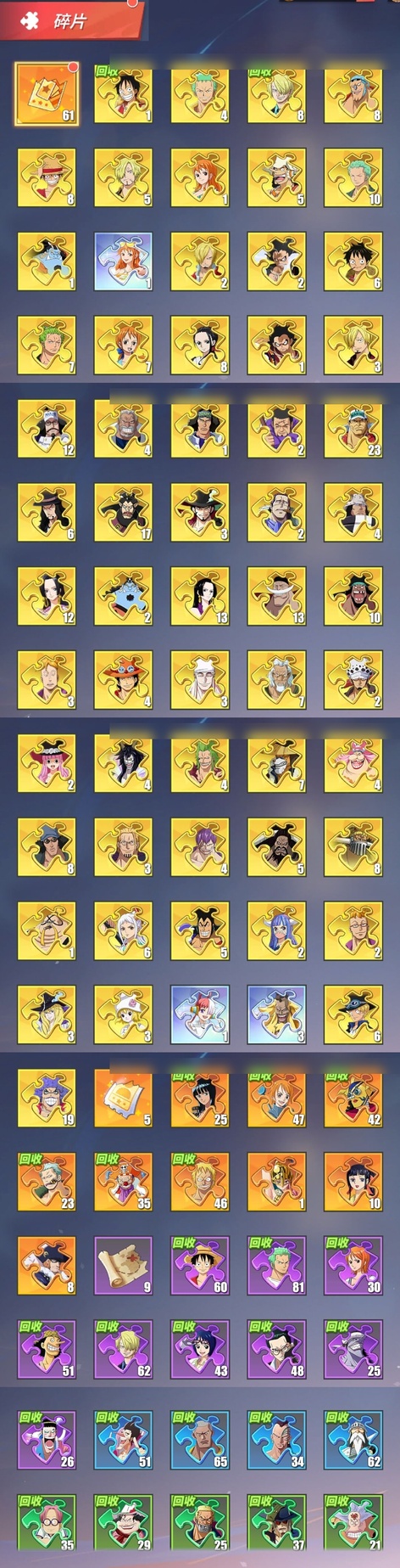 可換綁 和羅賓已出 差五個 三98吞吞 伽治 鞭子 兩個神船 山治婚禮戰鬥皮 蕎麥假面 六星羅賓 多個形象 爆炸資源 邊玩邊賣資源只加不減