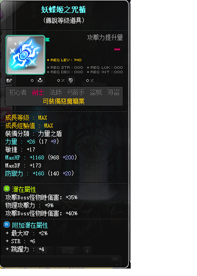 道具 【妖蝶姬之咒楯升級券】 ◤惡魔副武器◢此單為妖蝶姬之咒楯3排傳說75%BOSS9%物攻打王專用
