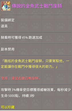 魔神的威嚇 45% 傳說的金魚武士戰鬥座騎 坐騎
