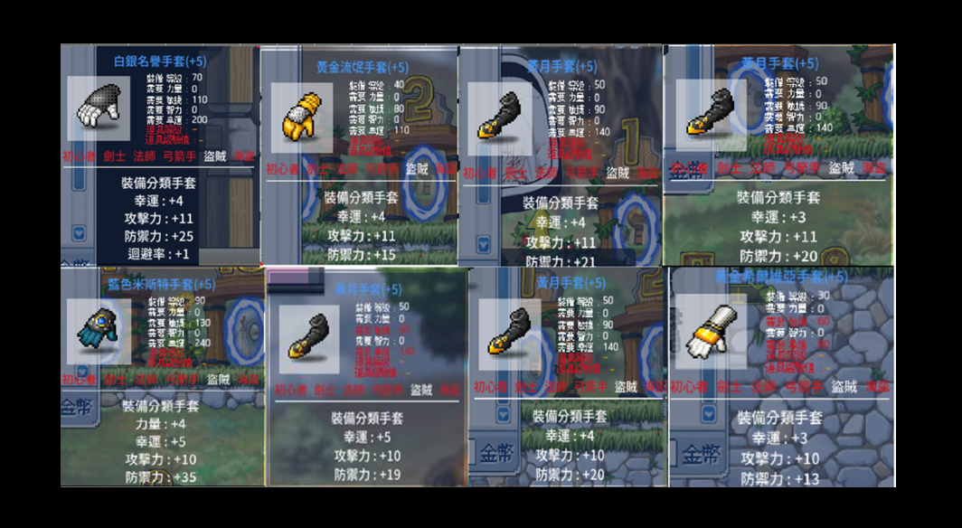建議新手小資玩家以低屬性為主,先求全身有,再一件一件升級 ]