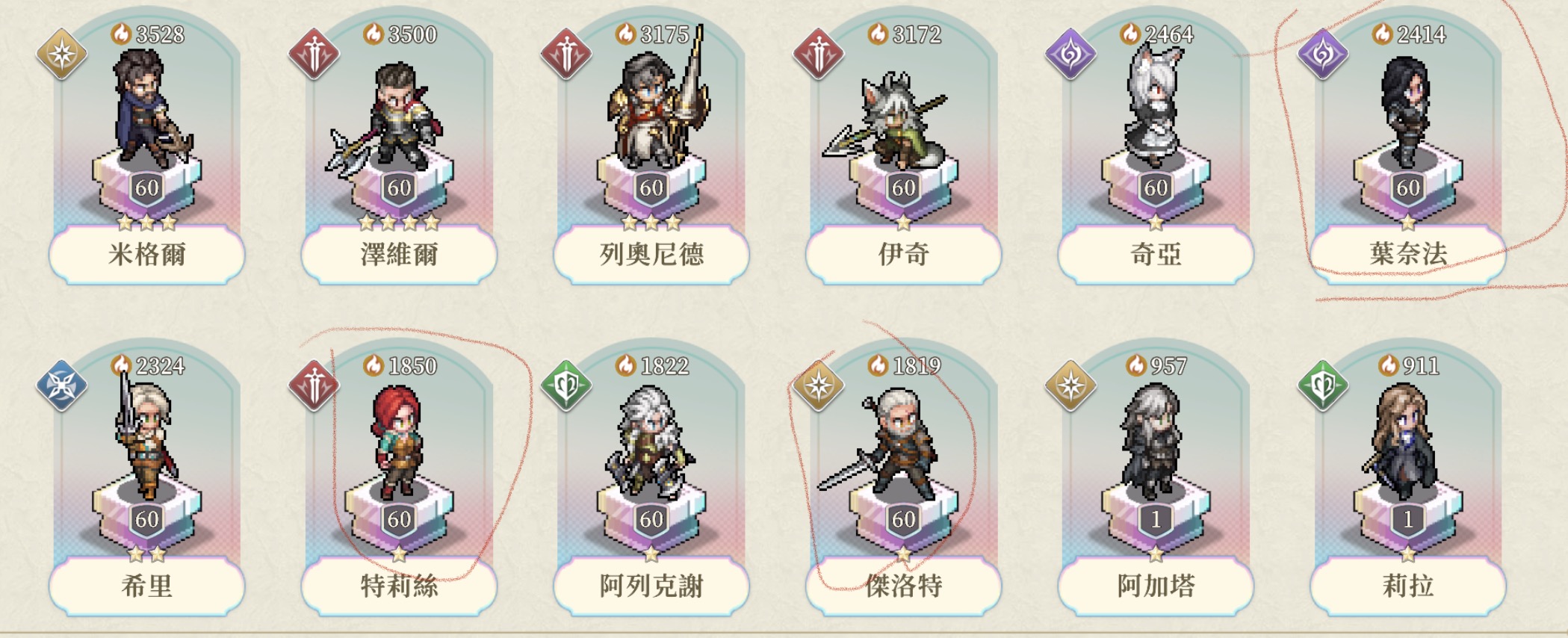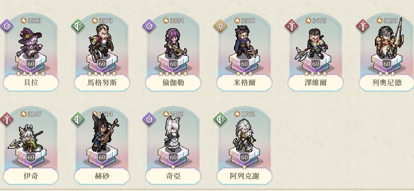 因沒時間玩了,腳色請參考圖片。 武器 塔羅 基本的都有。
