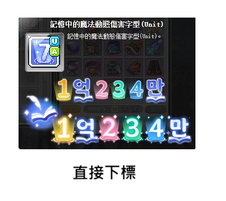 道具 【記憶中的魔法動態傷害字型(Unit)】 直接下標