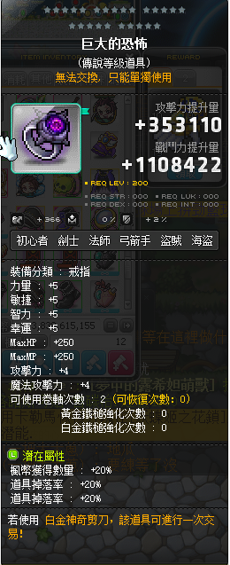 道具 【雙掉楓巨大的恐怖戒指】 雙掉楓漆黑/巨大的恐怖/PY戒指/掉寶裝/打幣裝/傳說潛
