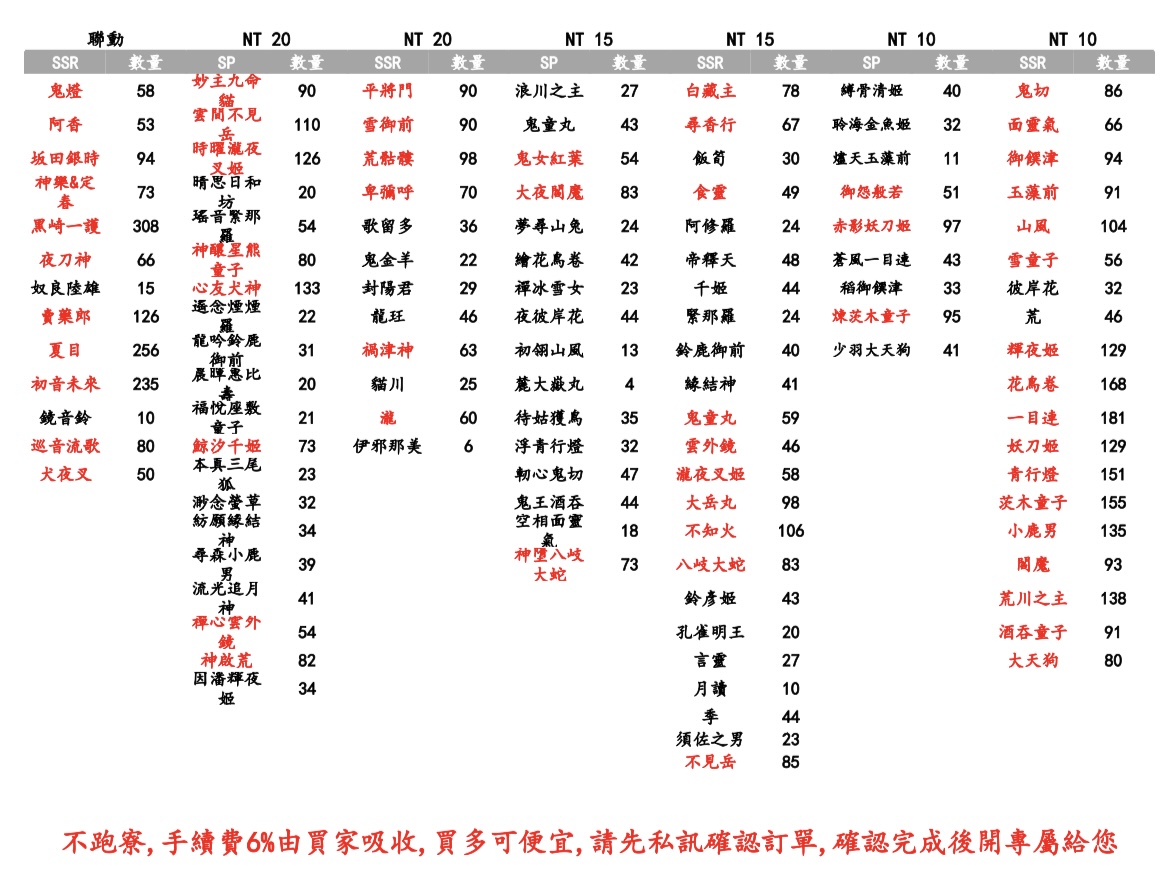 1️⃣ 先私訊確認式神、張數與價格