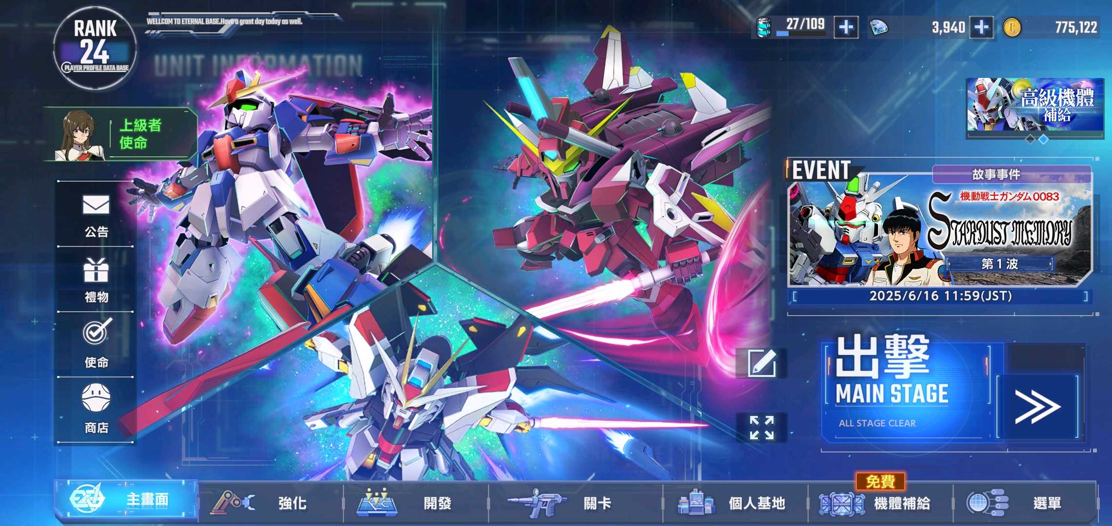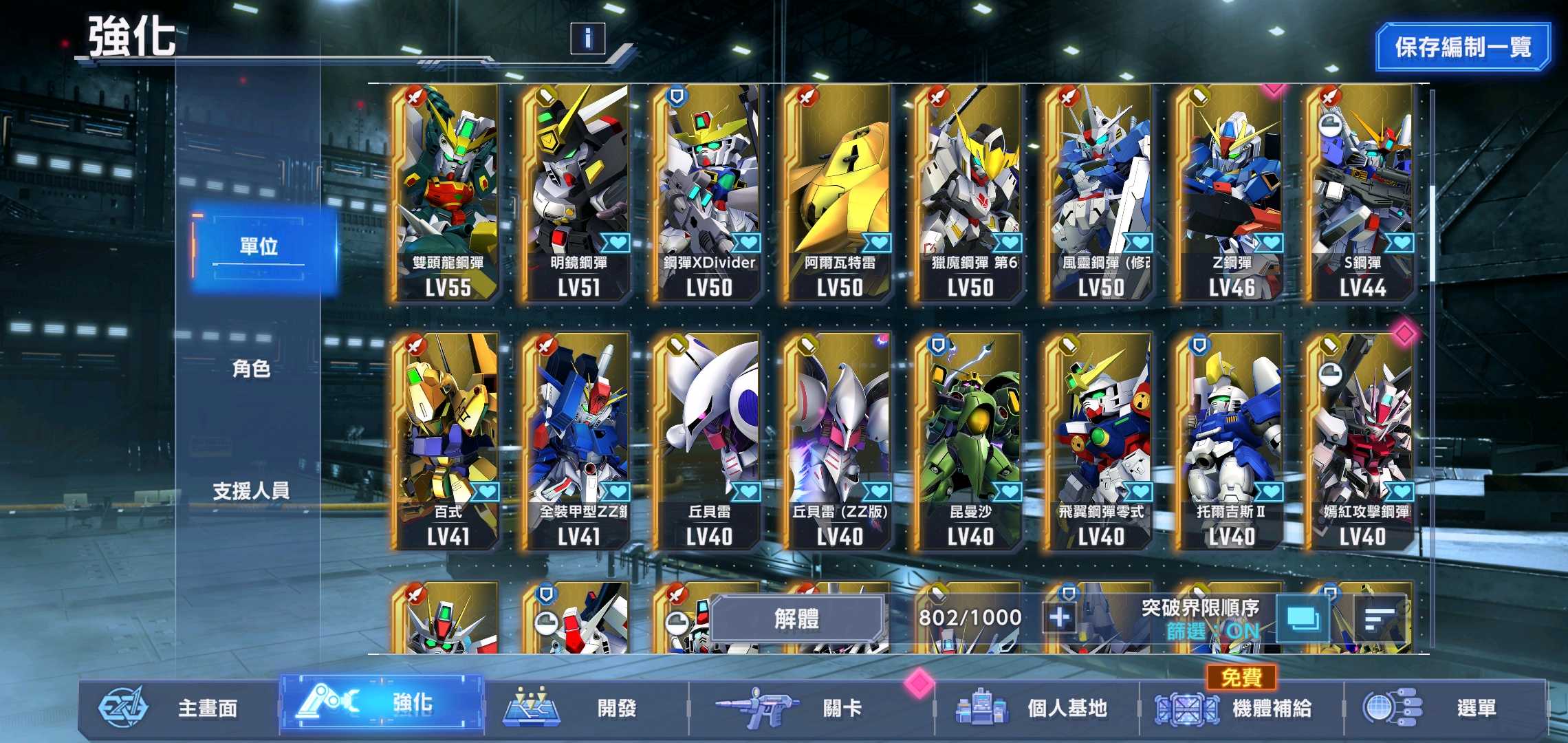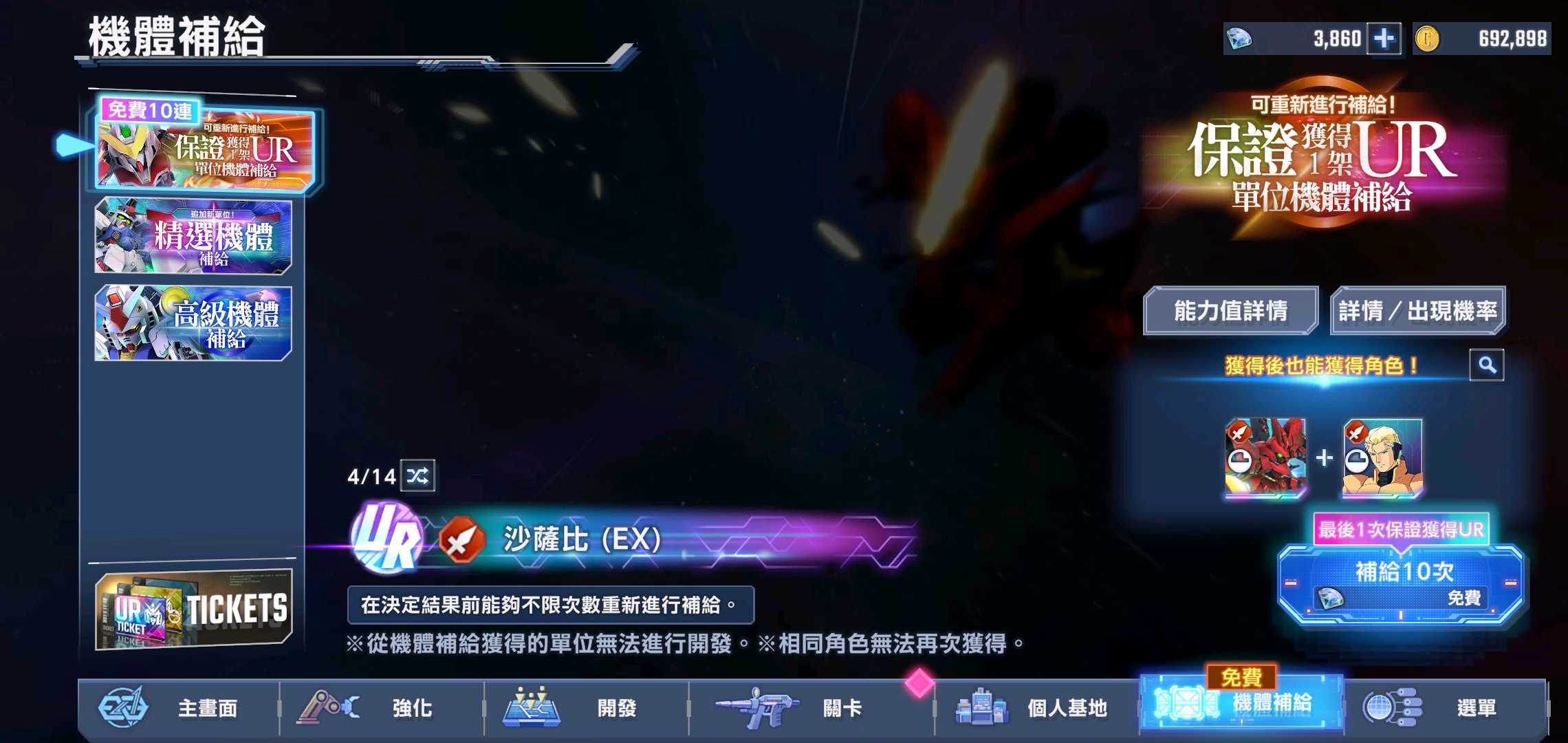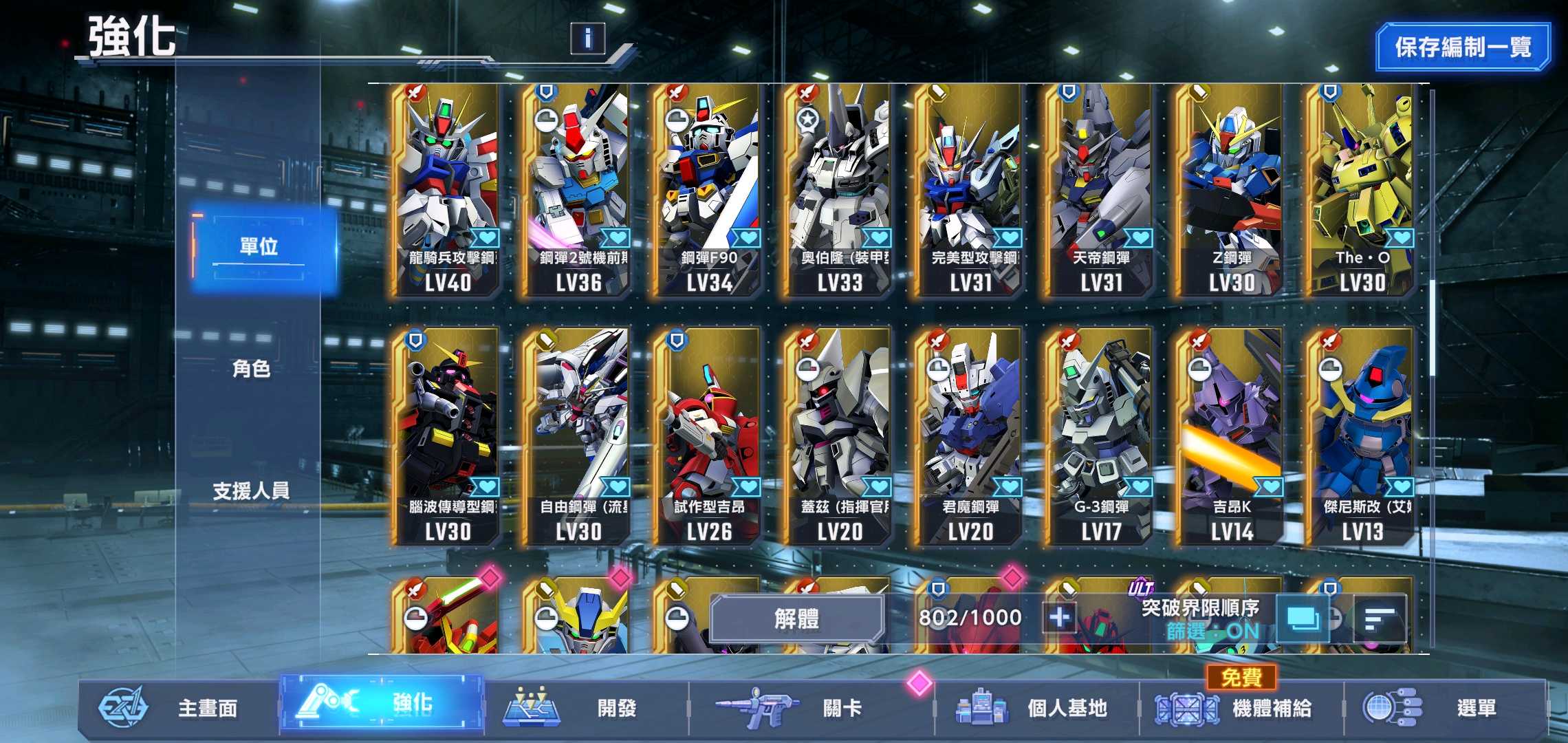 6架ssr滿突,免費抽任選還在,可選紅機組一擊隊。 100萬金幣_35000多鑽石。