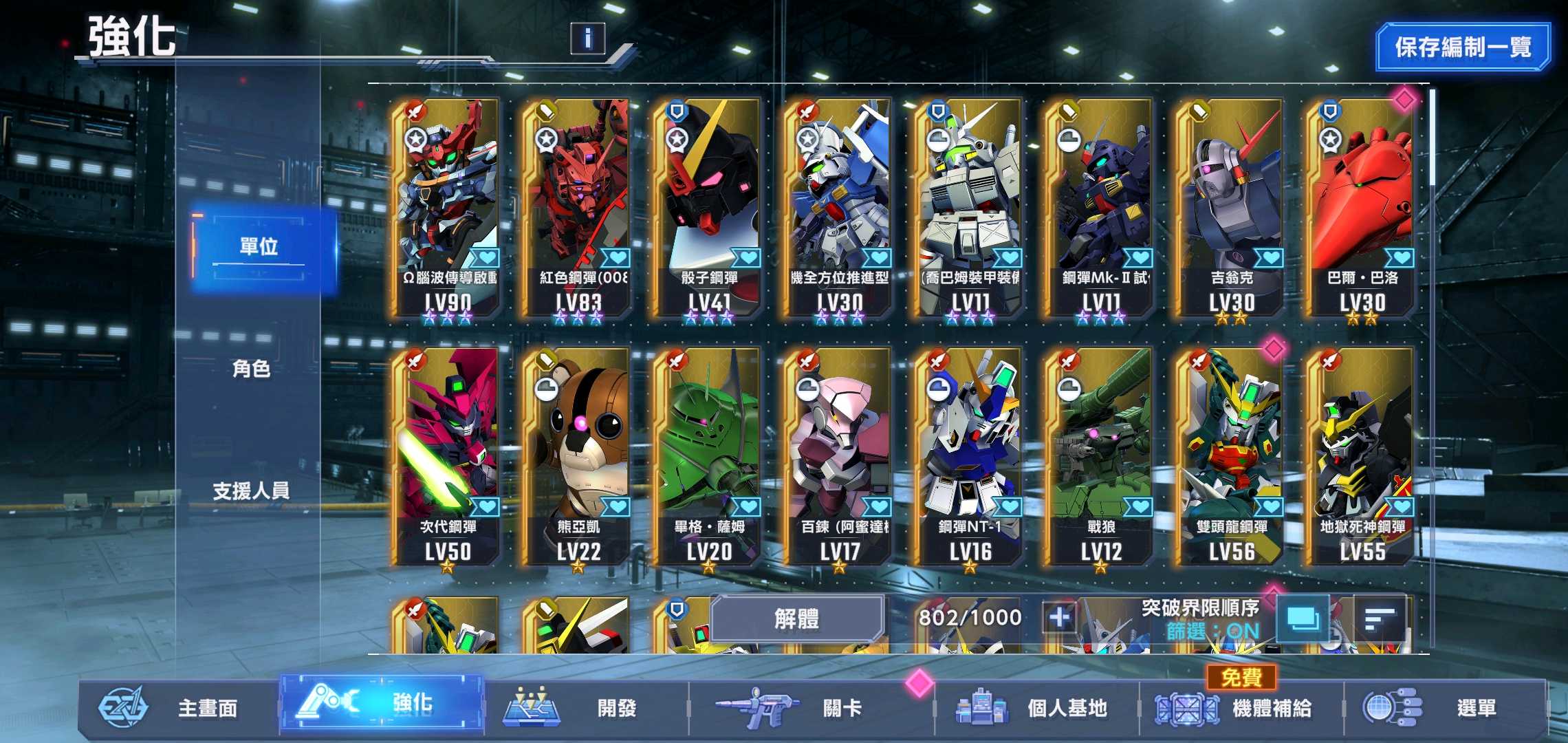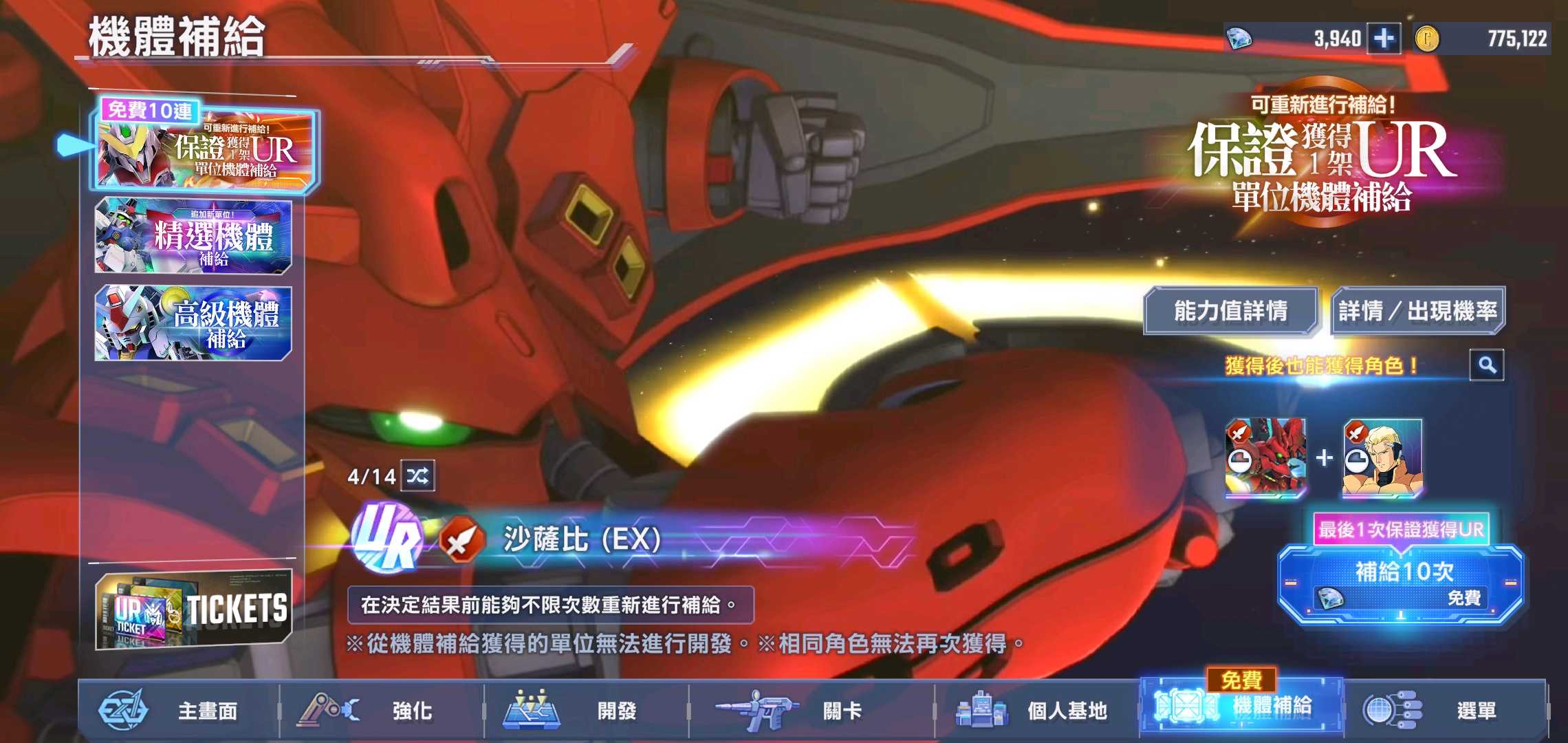 6架ssr滿突,免費抽任選還在,可選紅機組一擊隊。 100萬金幣_35000多鑽石。