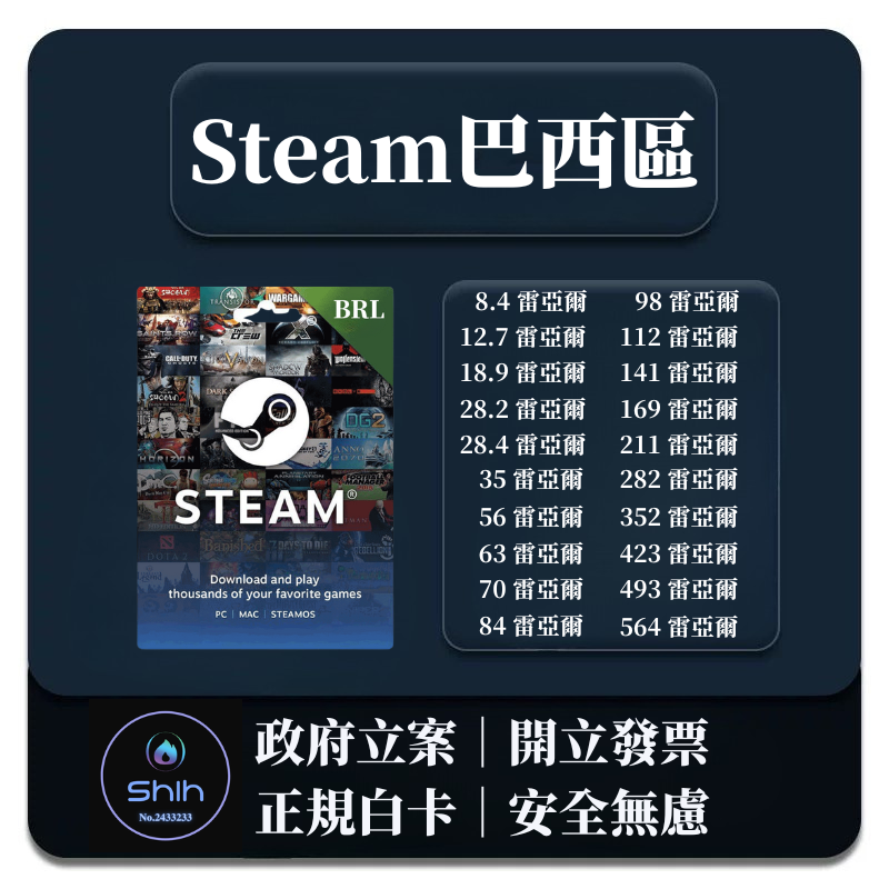 【巴西區 8.6BRL】 🔥SHIH🔥【政府立案開立發票】巴西Steam蒸氣卡🔥火速發卡🔥