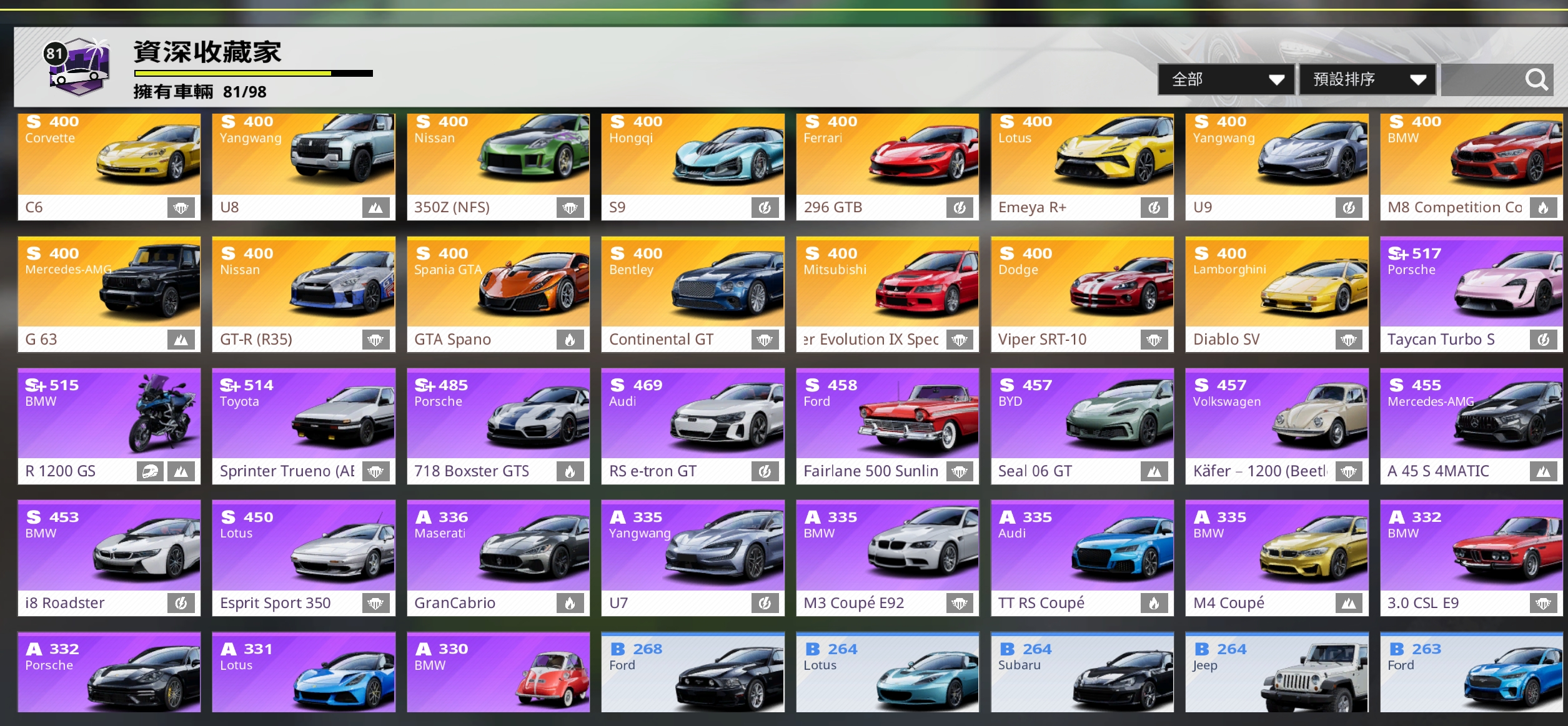 每組別限定車 (常駐車全齊)