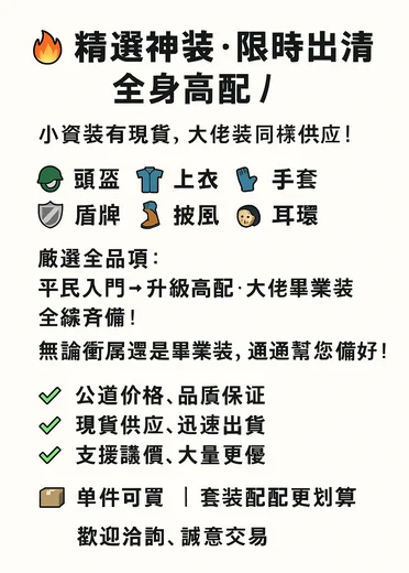 裝備全為50-60裝,若要單獨拆件購買私訊老闆