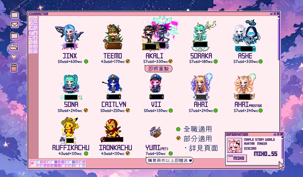 ※此造型購買方式需要代開您的帳號購買(避免造型購買關鍵字外流)!安全問題可放心,我只會需要到造型商店即可,您的Artale可以同時開著,並不會受到影響!