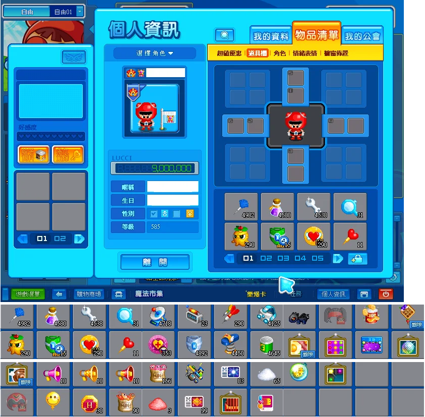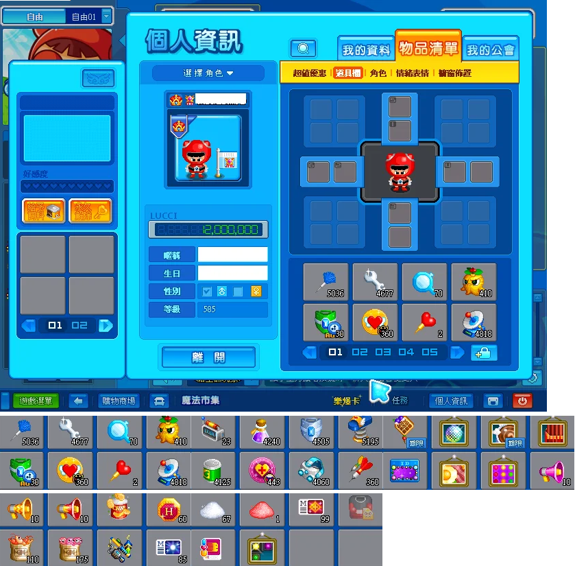 金幣皆可教學擴頂 無須花錢儲值 道具數量持續上升