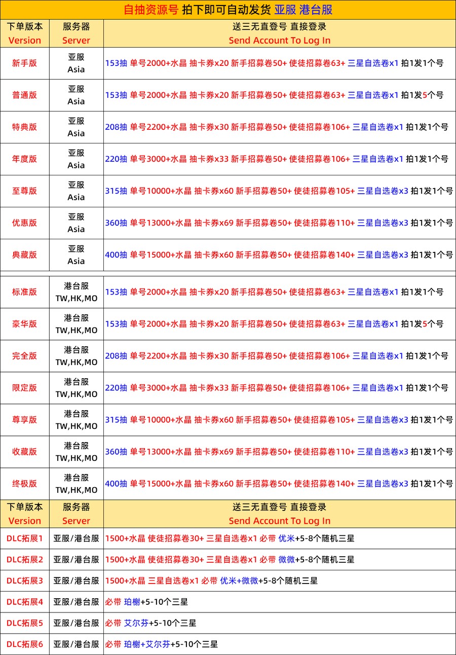 例如 陸服需要綁定到大陸的手機/信箱等個人資料,需要自行綁定,賣家無法提供,如果沒有大陸資料可以綁定 請謹慎購買