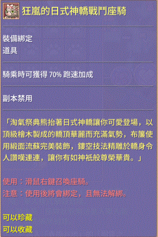 道具 狂嵐的日式神轎戰鬥座騎