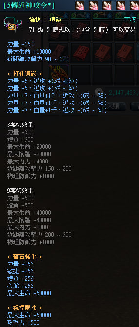 各式 5轉神攻裝-衡山裝-神攻裝-內有價格