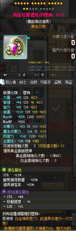 道具 【楓掉力頂鍊】 17星楓掉12力飾品/3+28星火/附加稀有頂級培羅德烙印墜飾/頂練/頂鍊/頂鏈
