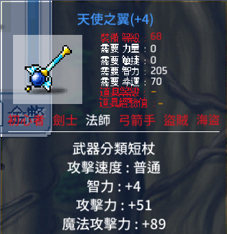 【天使之翼】 智4魔攻89天使之翼 68等法師短杖 裝備武器另有賣火焰之杖魔翼之杖