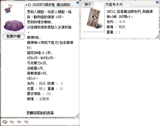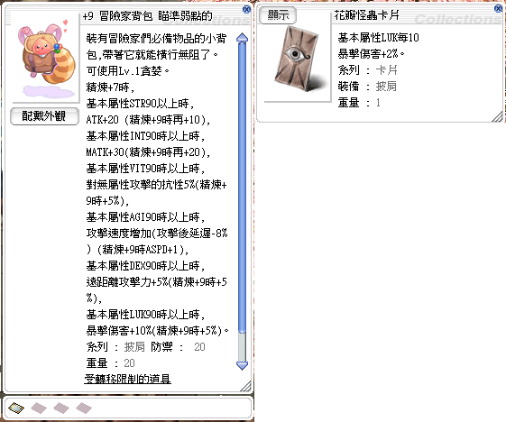 道具 +9冒險家背包 已插花辦怪蟲卡