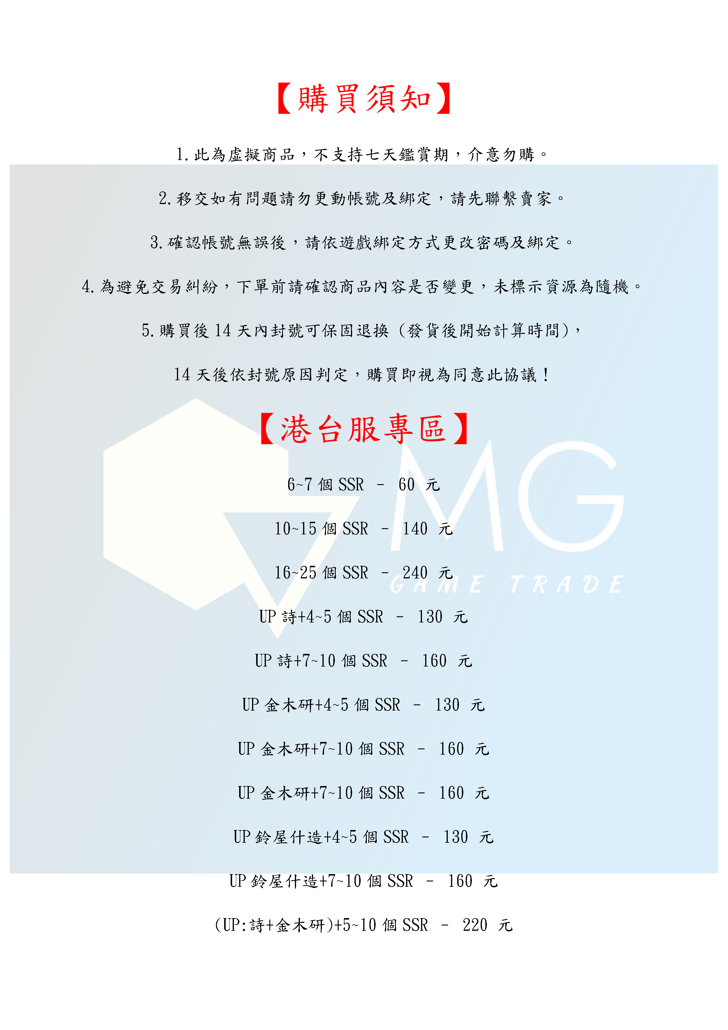 帳號 【初始號】 【MG數碼】 台服 日服 多石號 多鑽石號 初始號 自抽號 自選號 自選組合