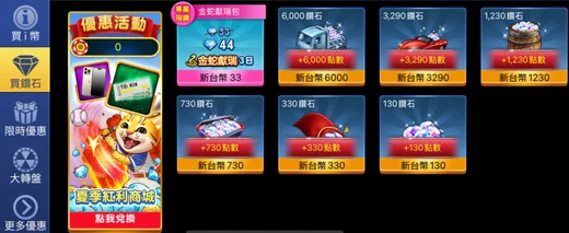 禮包類型:純幣(不建議購買)、純鑽(大約1.2~1.4倍加碼)、鑽+幣包(鑽+幣400%)、經驗禮包