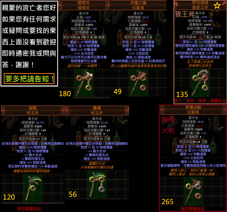 道具 【傭兵】 『單手斧』破城斧、龍鳳、傑克、談判、鷹嘯、獅鷲、月嵐、恐懼、野性、畏懼