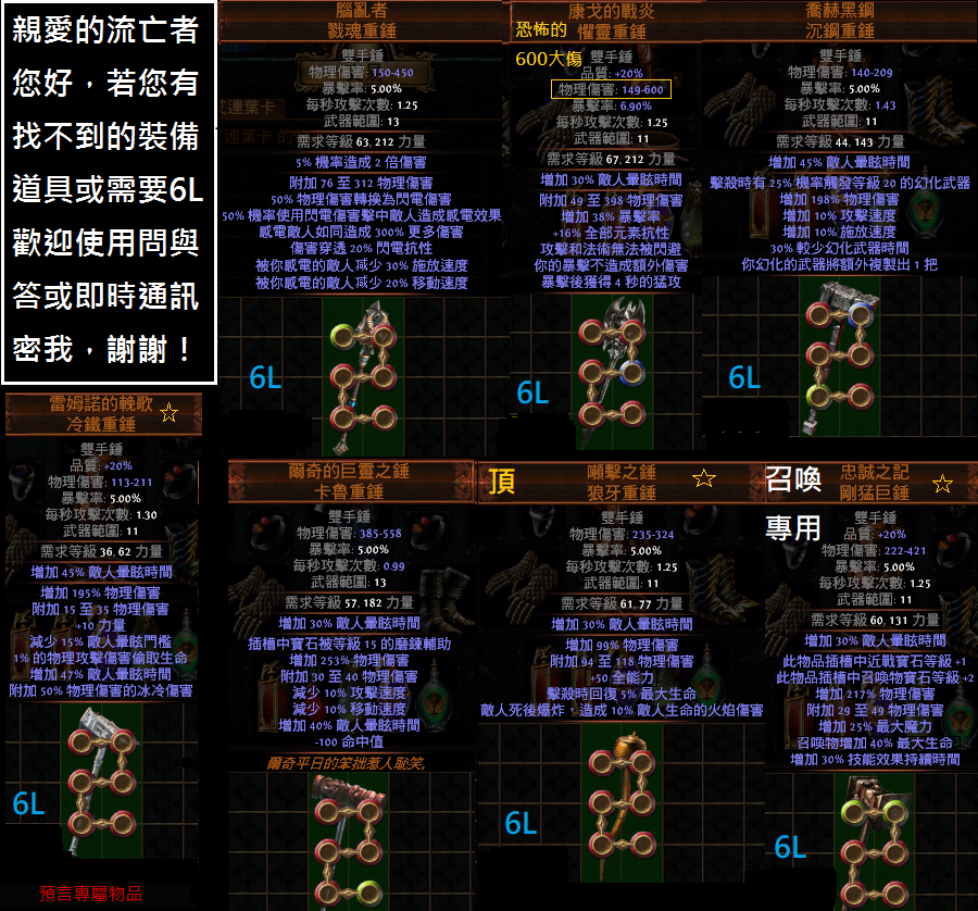 在交易時請放上一件您不需要的物品。例如武器、防具、技能石、地圖、材料、捲軸....等等