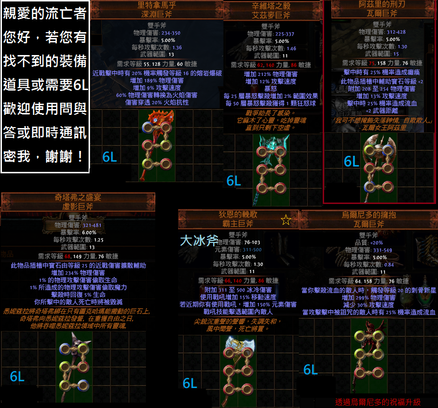 道具 【傭兵】 『雙手斧』女王斧、烏爾、狄恩、奇塔、黑茲、亂世、王者、死神、收割、里特