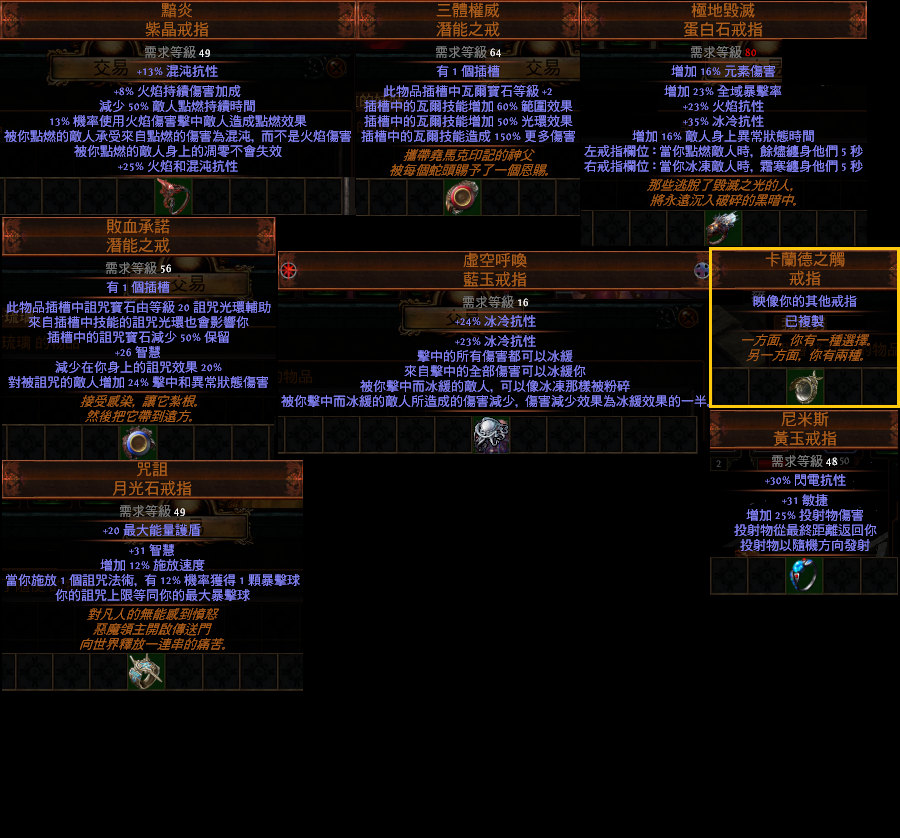 在交易時請放上一件您不需要的物品。例如武器、防具、技能石、地圖、材料、捲軸....等等