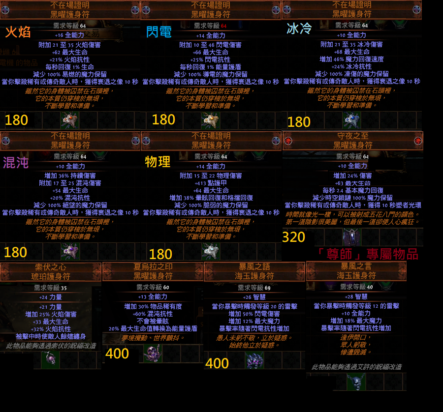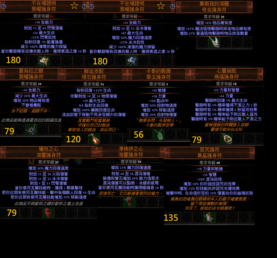 道具 【傭兵】 『護身符項鍊』索伏、群魔、奧爾、星塵、先祖、均衡、閉鎖、屠戮、激情、晶化