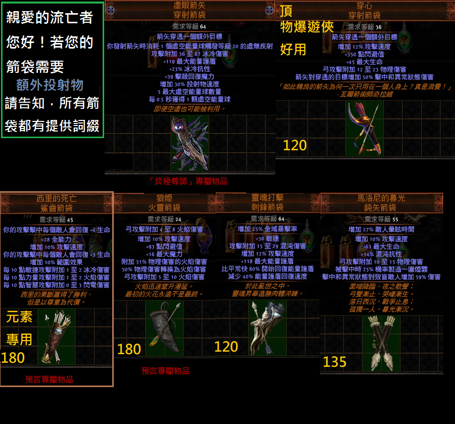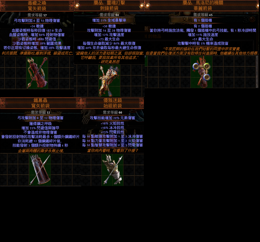 其他『箭袋』『珠寶』『深淵珠寶』『藥水』『地圖』『技能』『雜項』