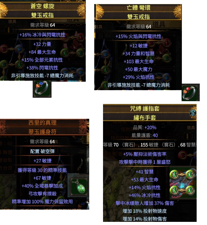 其他 只售一套裝備球z 銳眼魔改箭矢元素打擊光譜 退坑 含珠寶藥水技能 便宜賣~