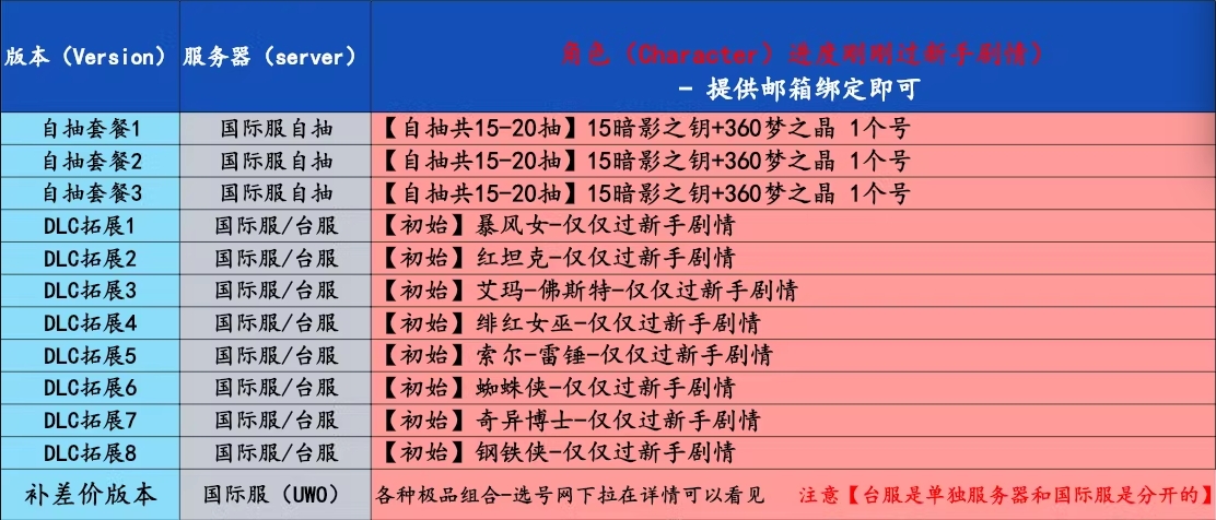 例如 陸服需要綁定到大陸的手機/信箱等個人資料,需要自行綁定,賣家無法提供,如果沒有大陸資料可以綁定 請謹慎購買