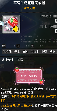 道具 【草莓牛奶瓶聊天戒指】 草莓牛奶瓶聊天戒指含剪