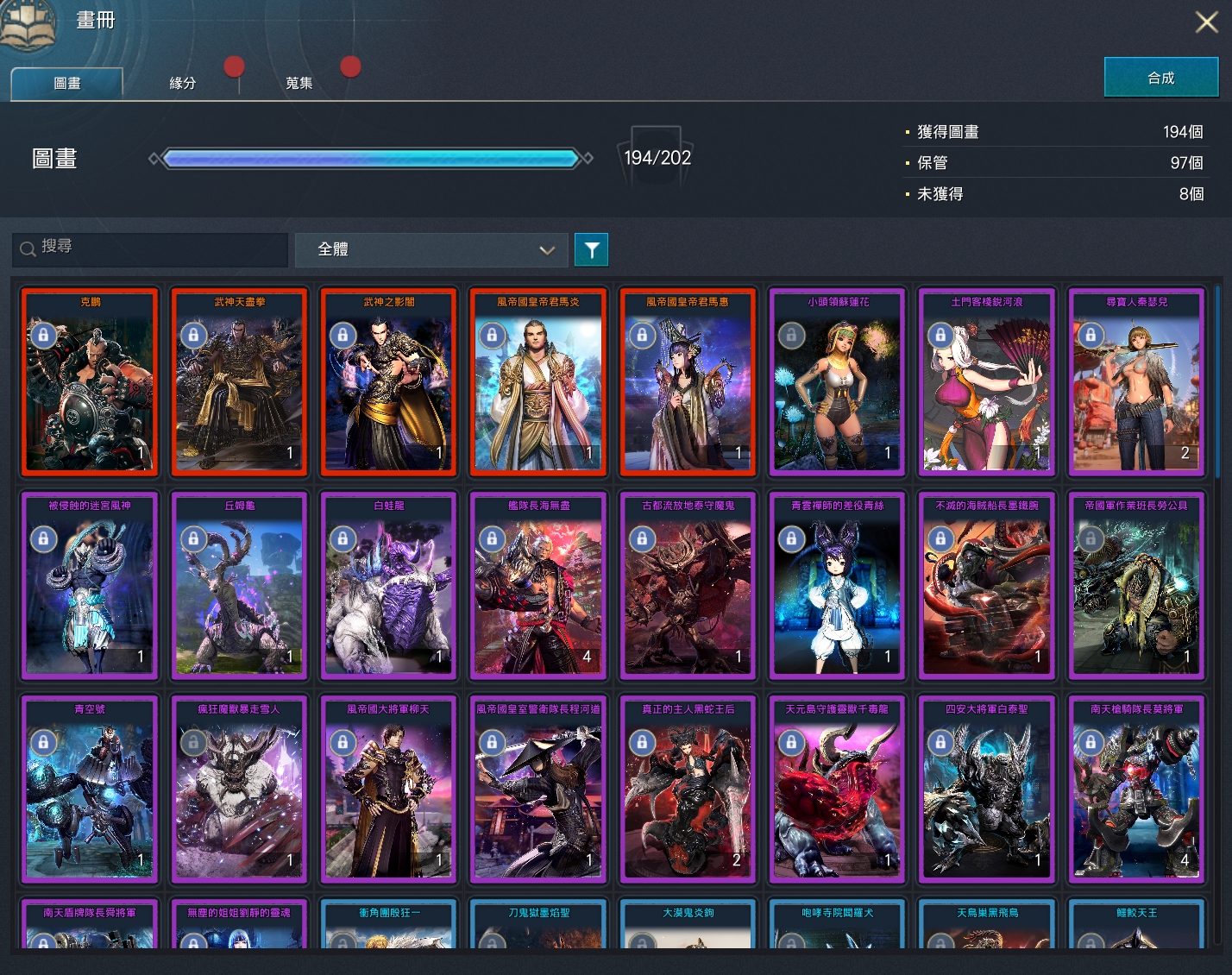 全卡冊進度115/137(115完成:17進行中:5未進行)